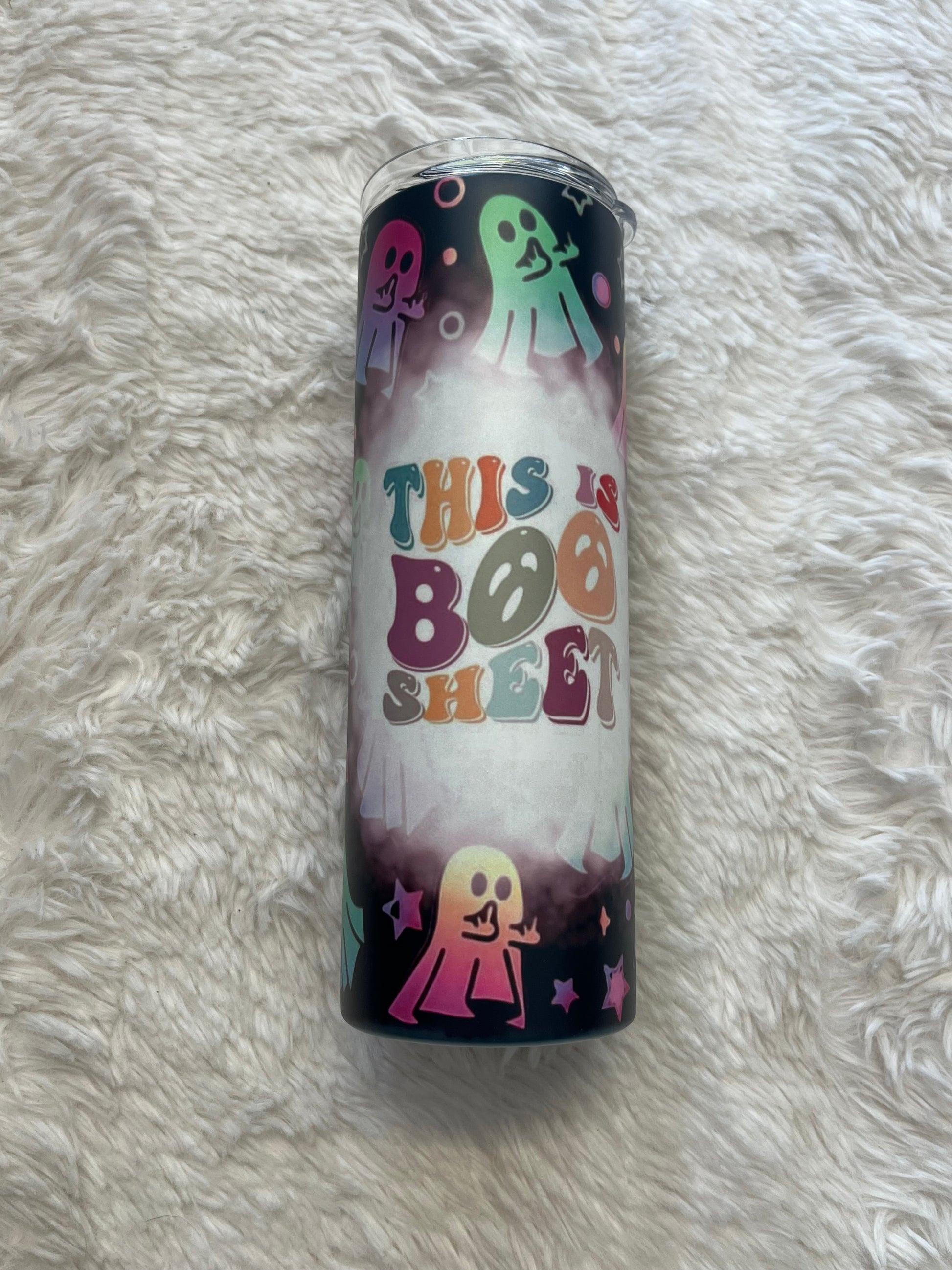 Get spooky and stylish with the “This Is Boo Sheet” tumbler — a cheeky mix of pastel ghosts, playful lettering, and glow-in-the-dark magic. Whether you’re sipping on iced coffee or a cozy fall drink, this tumbler brings a fun twist to your daily routine with its hauntingly cute design.