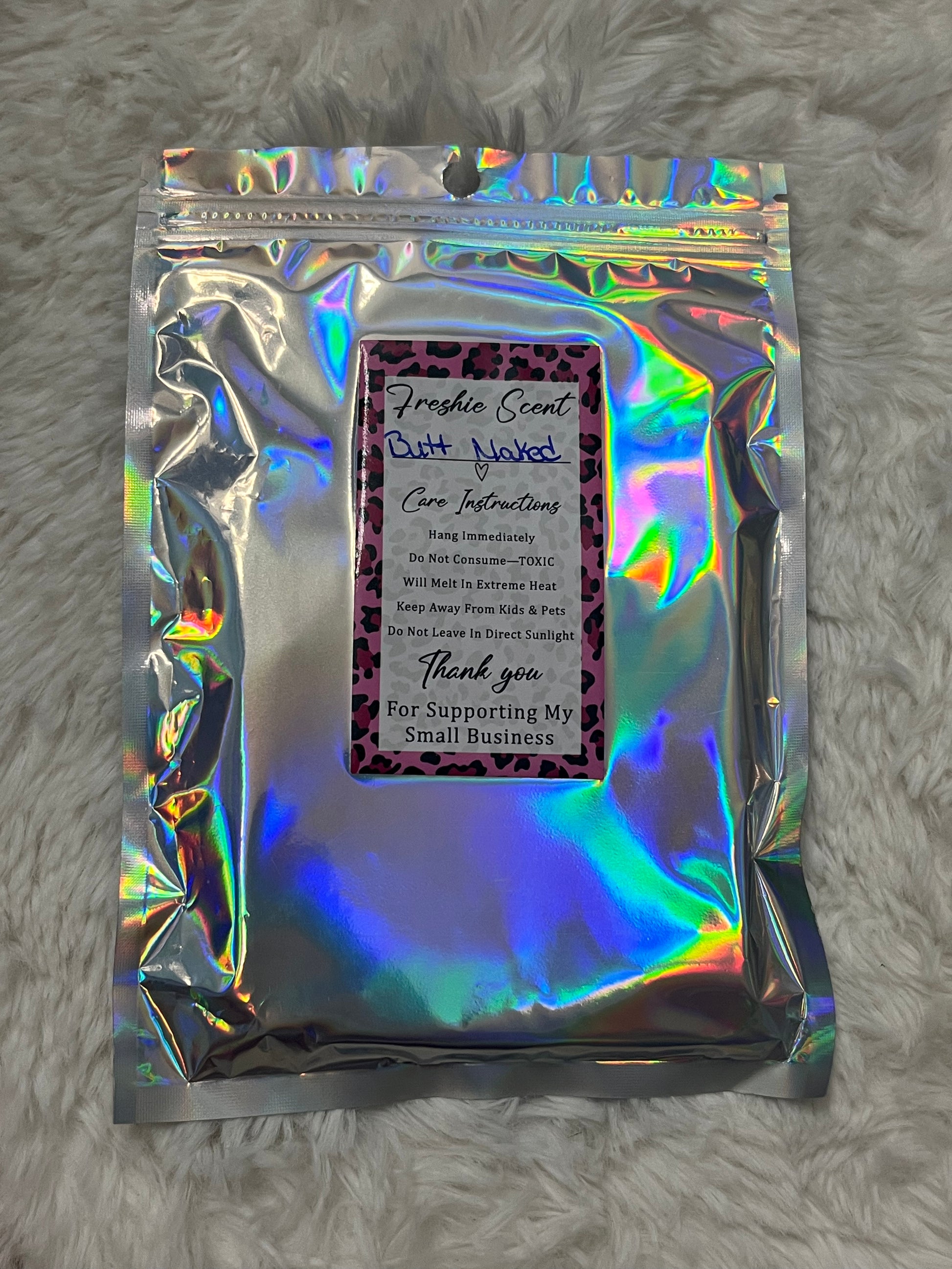 Perfect for RV life, campsite hangs, and friends who know how to have a good time, this cheeky freshie features the hilarious “Drunkest Bunch of A**holes This Side of the Campground” design. Finished with a bright yellow bow and packaged in a holographic bag, it’s as funny as it is fragrant.