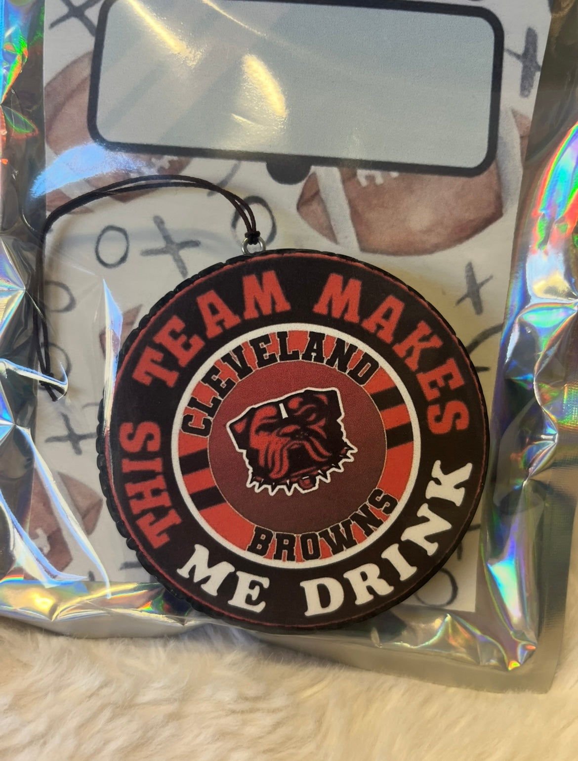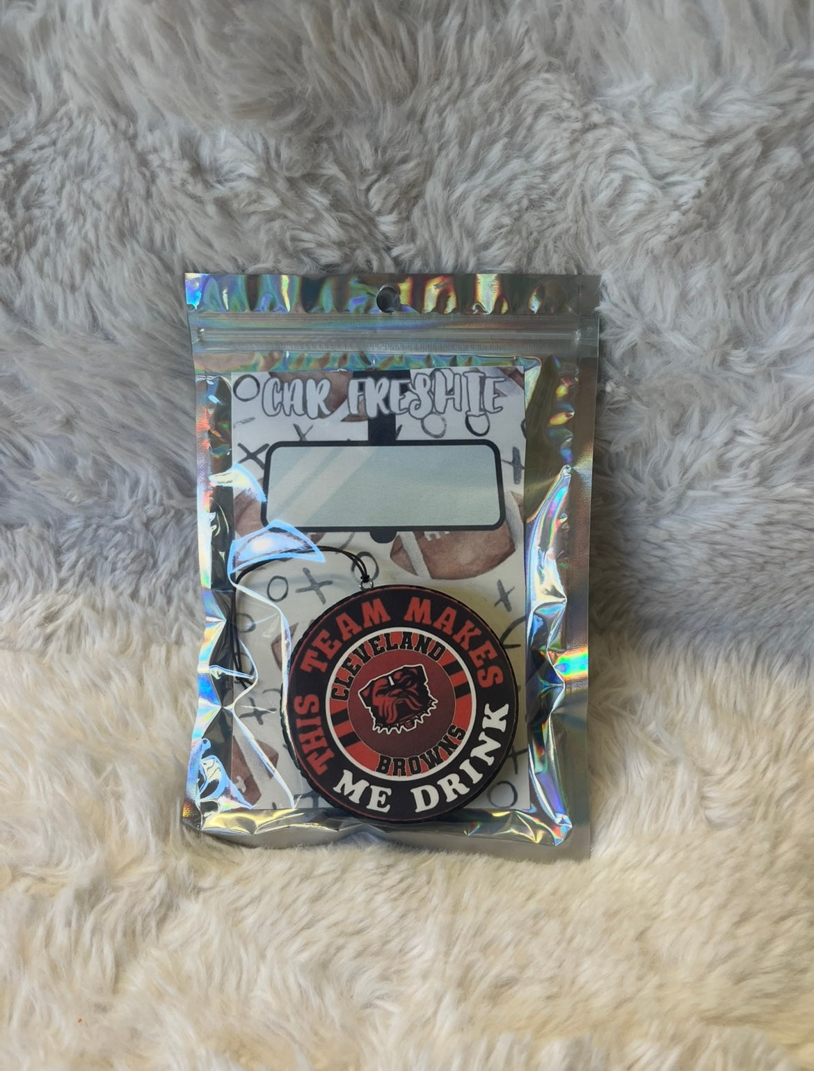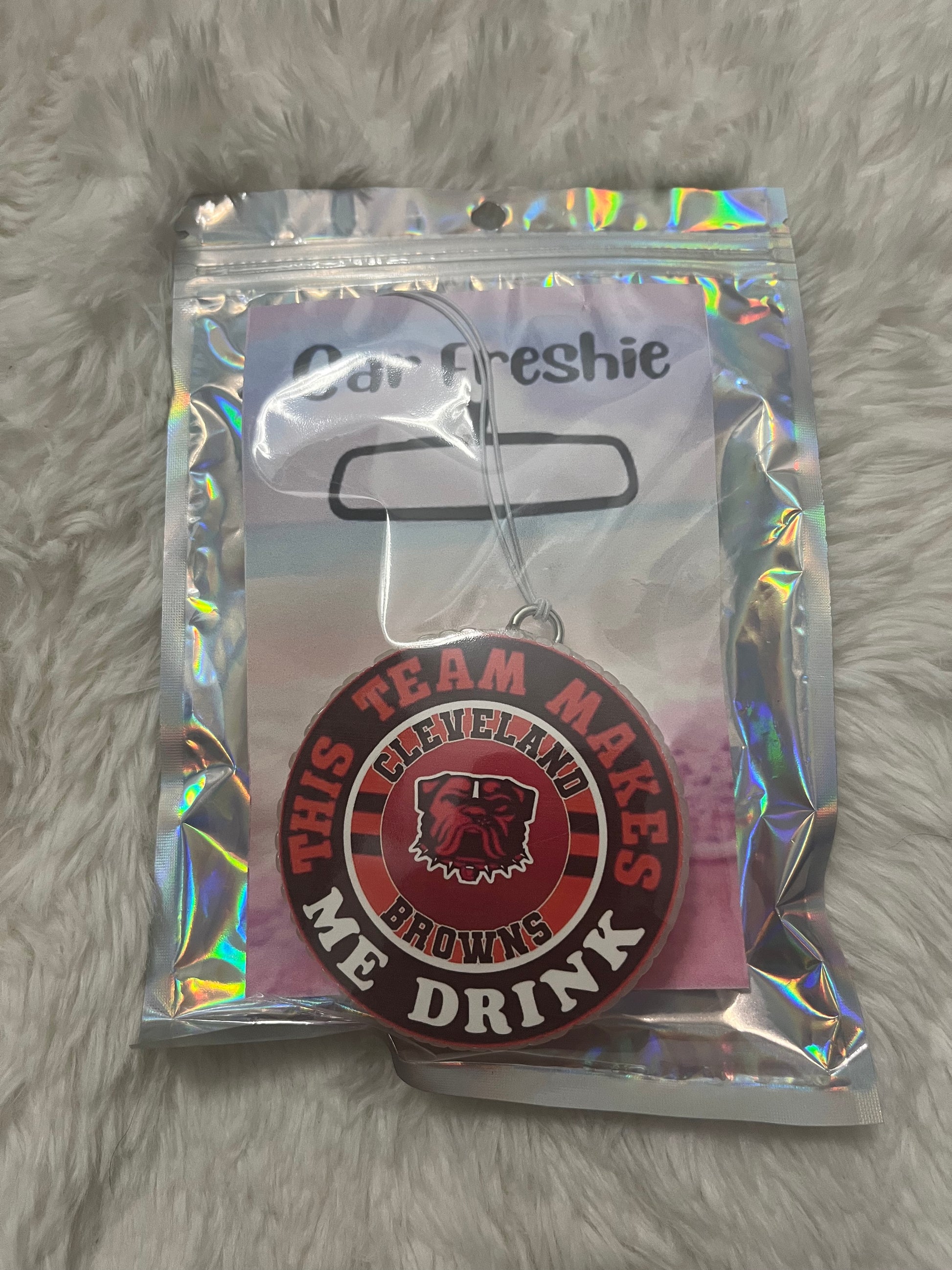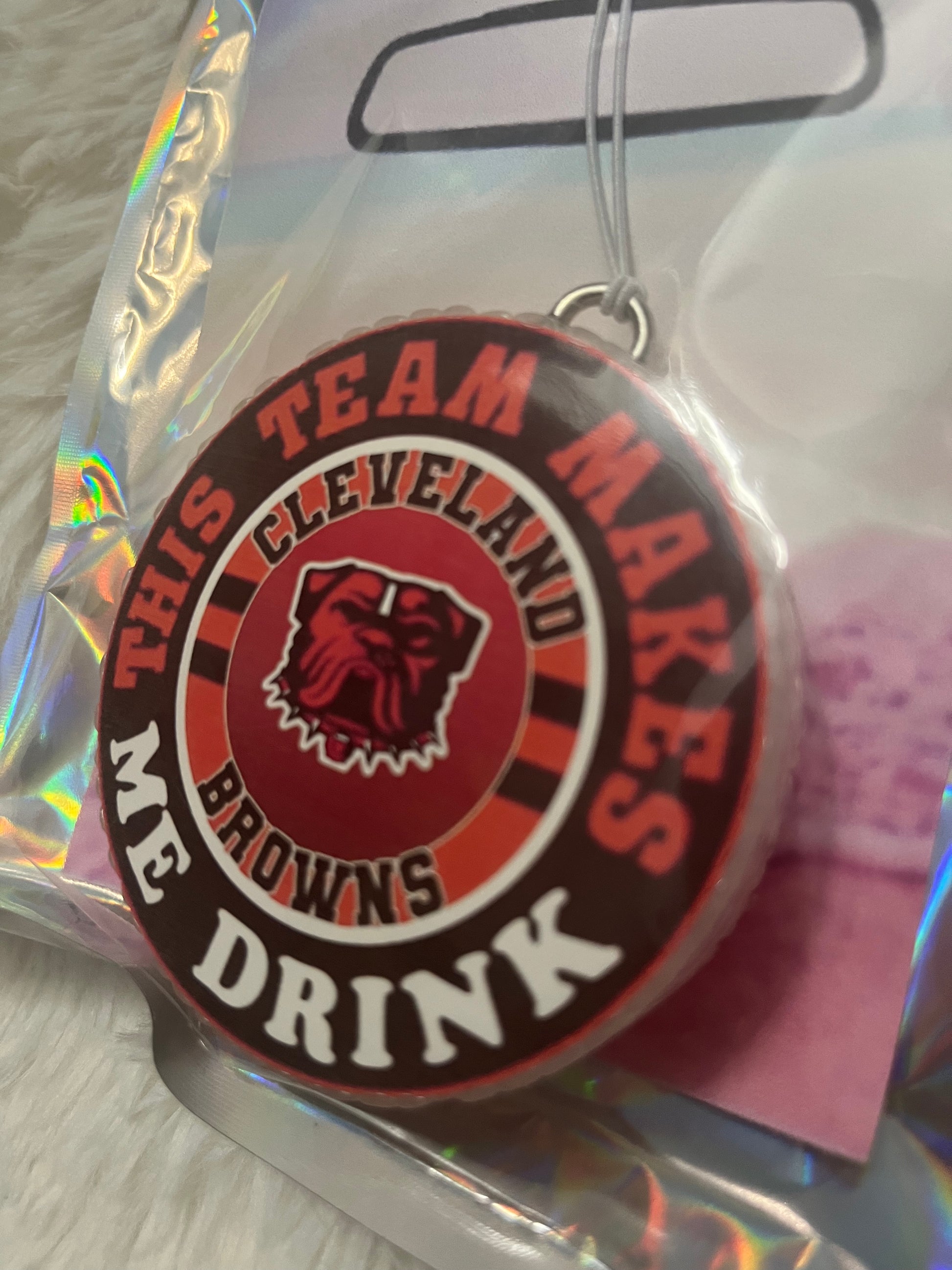Rep your team spirit (and keep your ride smelling amazing) with these Cleveland Browns car freshies! Perfect for fans who know the highs, the lows, and the “this team makes me drink” moments. Each freshie is individually sealed for long-lasting fragrance and features a bold Browns-themed design that’s sure to score style points.