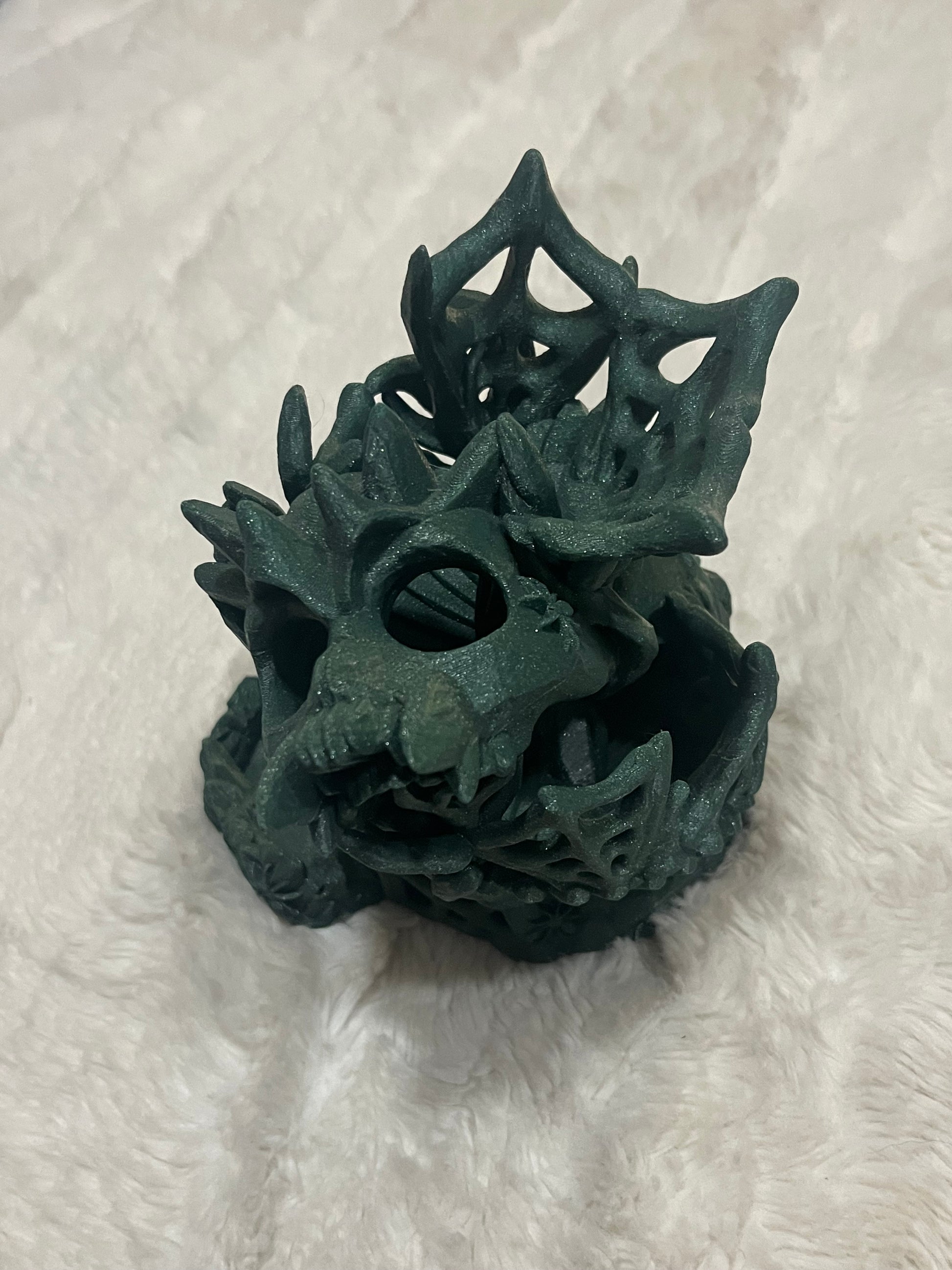 A dark, organic-spiked dice tower with deep carved channels and a web-like crown that guides your roll from top to bottom. Sculpted with jagged texture, cavern hollows, and twisted shapes, it feels like something pulled straight from a forest dungeon or ancient stone ruin. Designed for tabletop play, display, or as the centerpiece of your dice-rolling ritual.