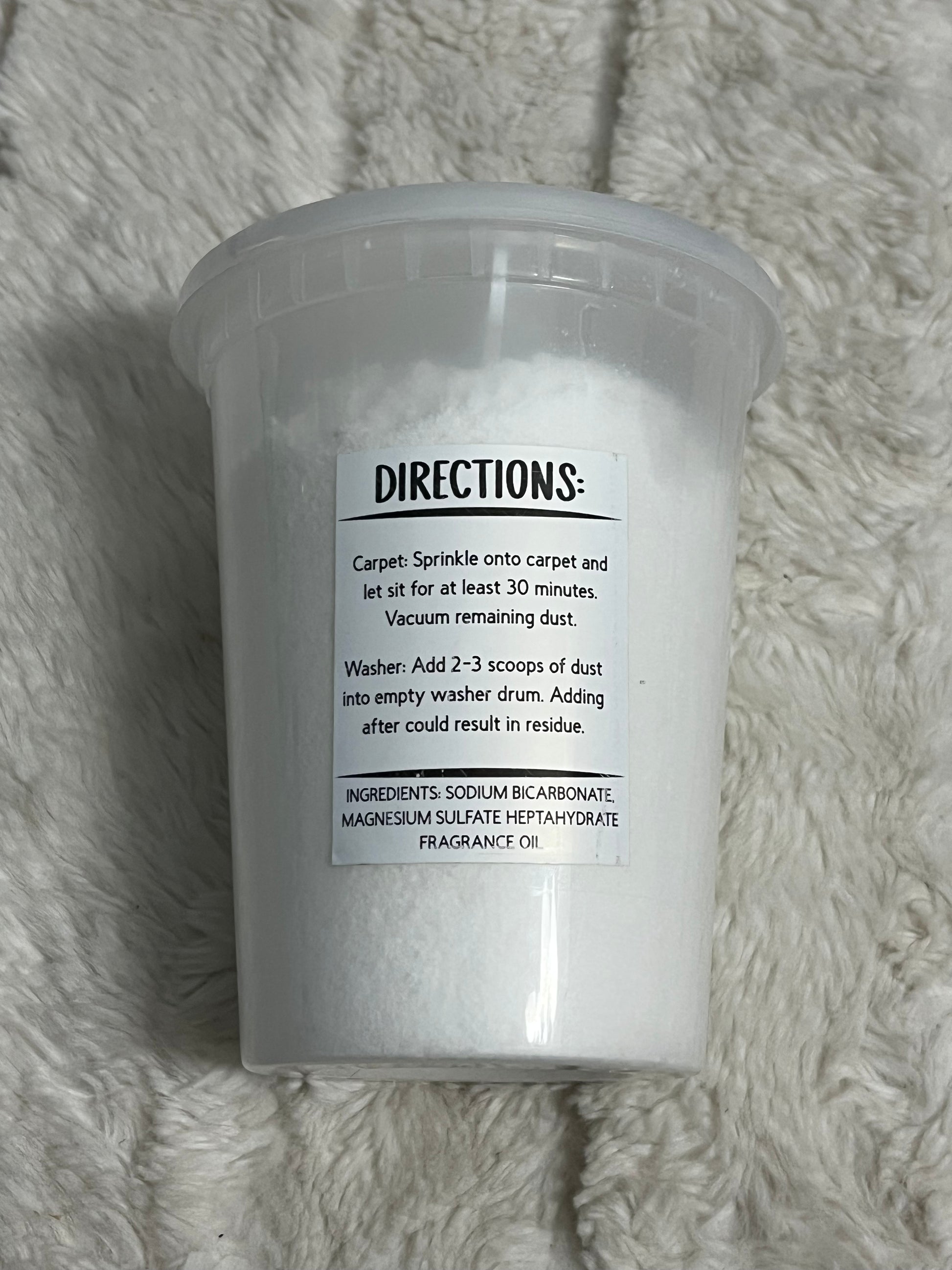 - Carpet: Sprinkle evenly and let sit for at least 30 minutes, then vacuum.