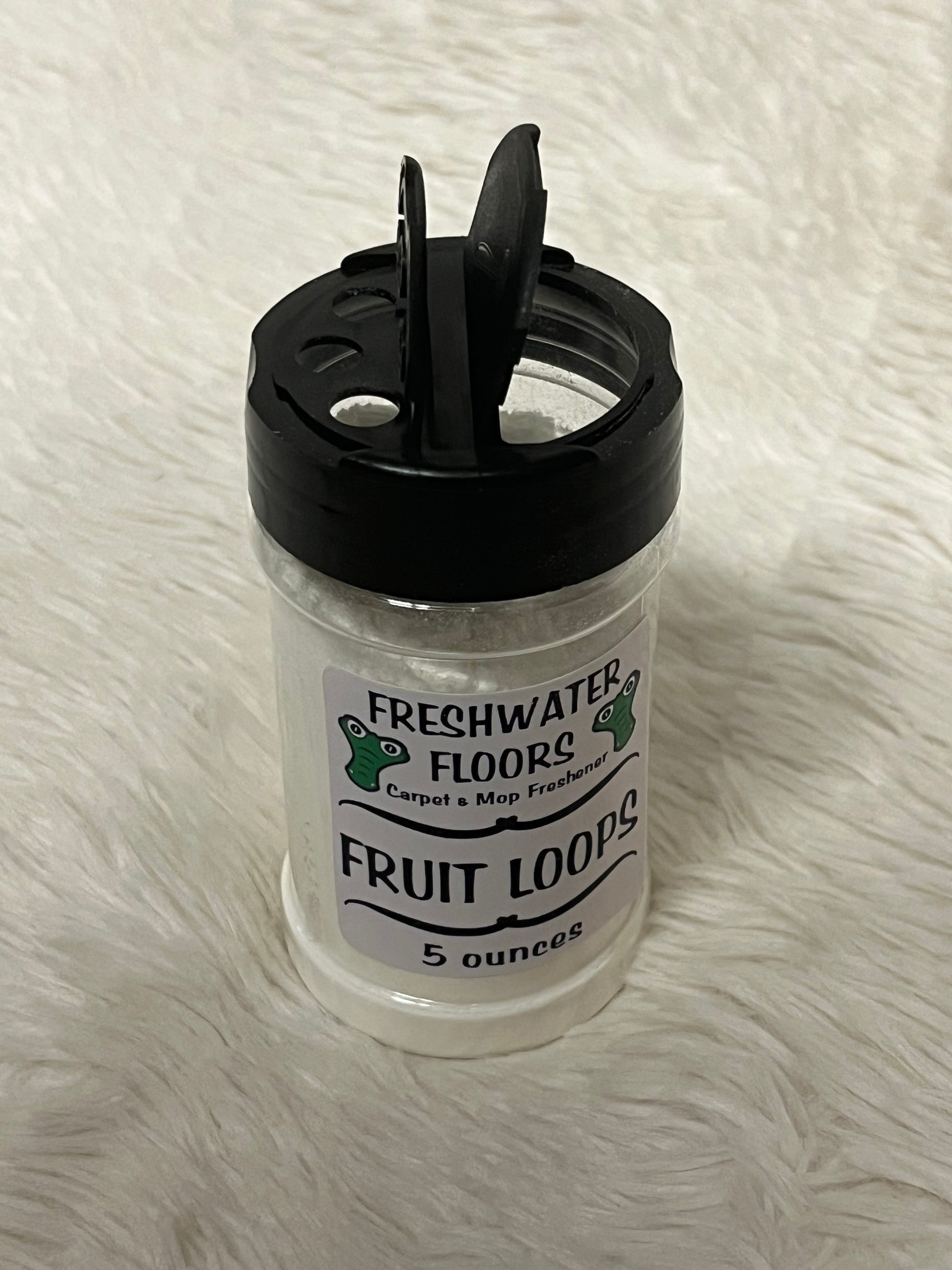Bring the fun, fruity scent of Saturday mornings straight into your home with our Fruit Loops Freshwater Floors Carpet & Mop Freshener. This powder neutralizes odors while leaving behind the playful, citrusy-sweet aroma of Fruit Loops cereal. Sprinkle on carpets before vacuuming or add to mop water for a burst of cheerful freshness in every corner.
