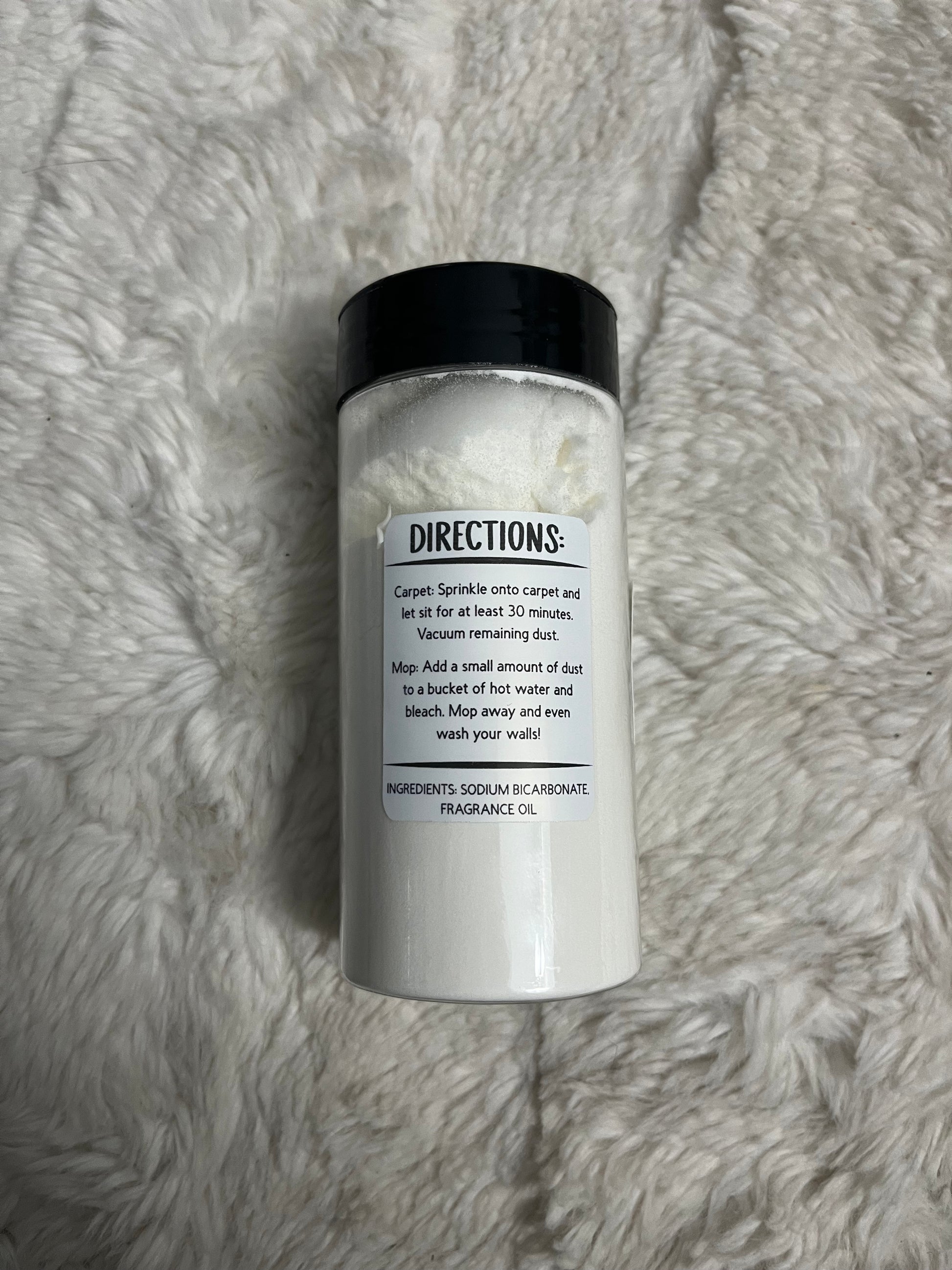 - Carpet: Sprinkle onto carpet and let sit for at least 30 minutes. Vacuum remaining dust.