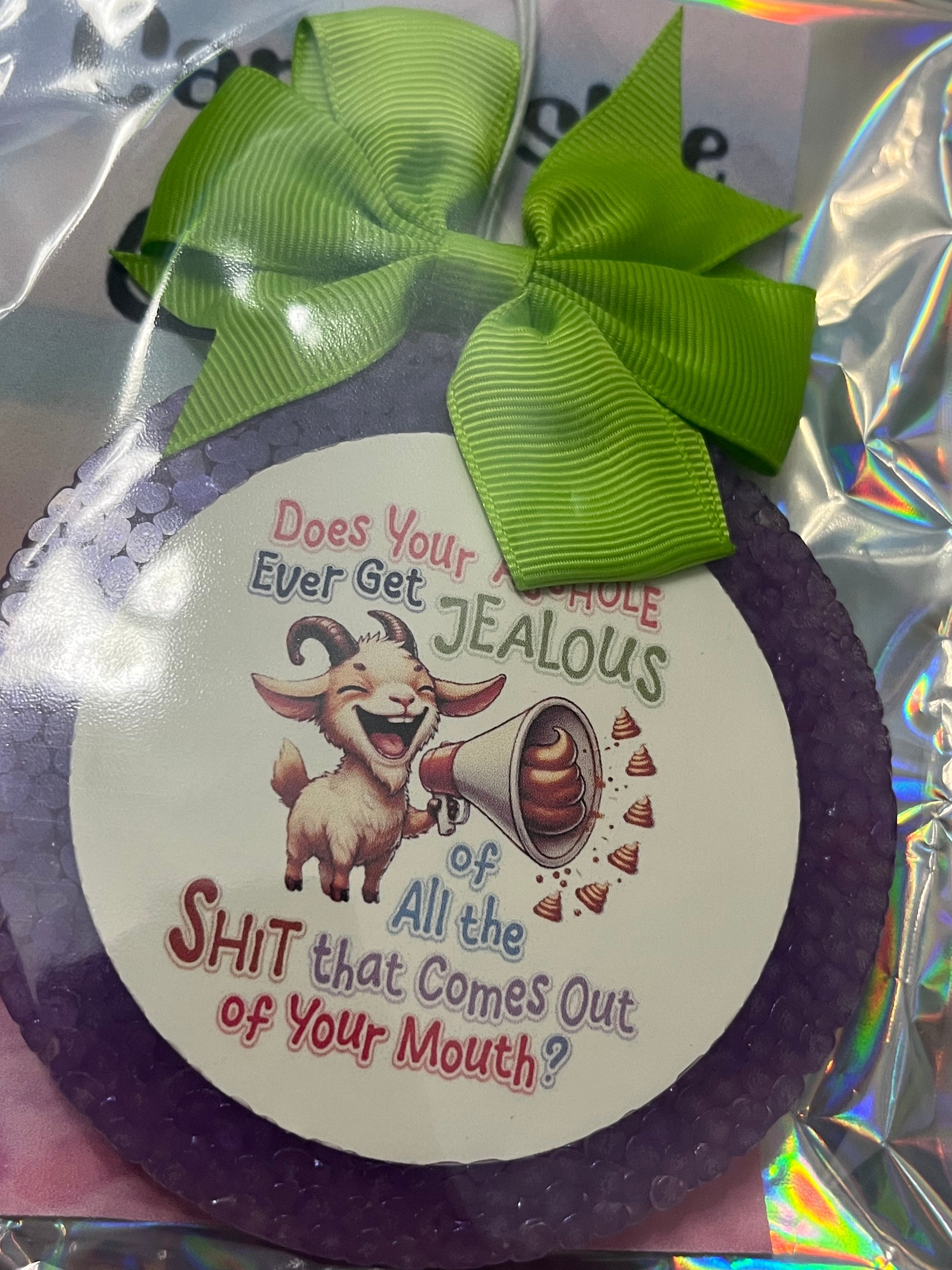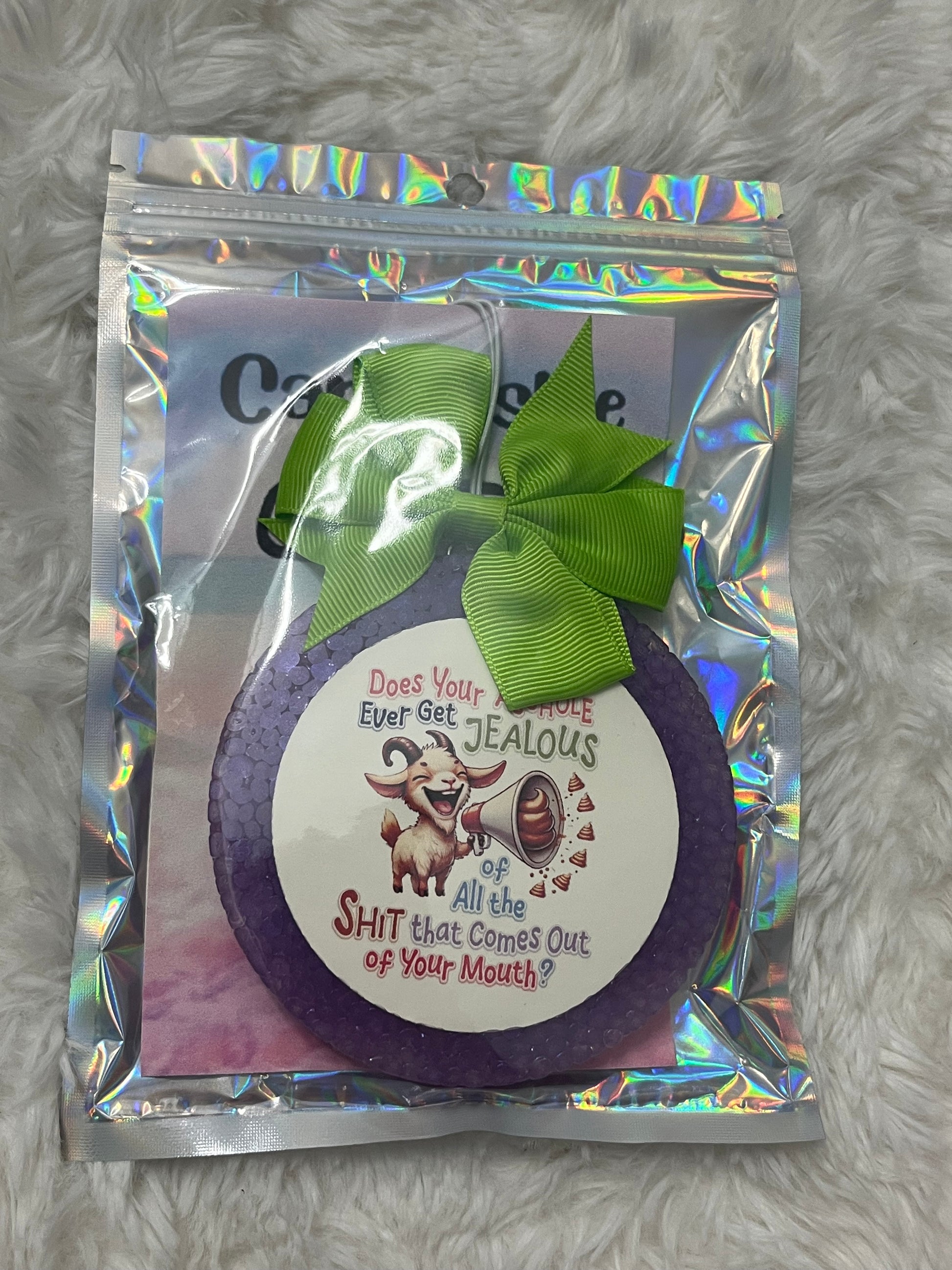 Make a bold (and hilarious) statement with this Funny Goat Freshie! Featuring a cheeky goat and a laugh-out-loud saying, this freshie is guaranteed to turn heads and spark conversations. Topped with a bright green bow, it’s equal parts sassy and stylish.