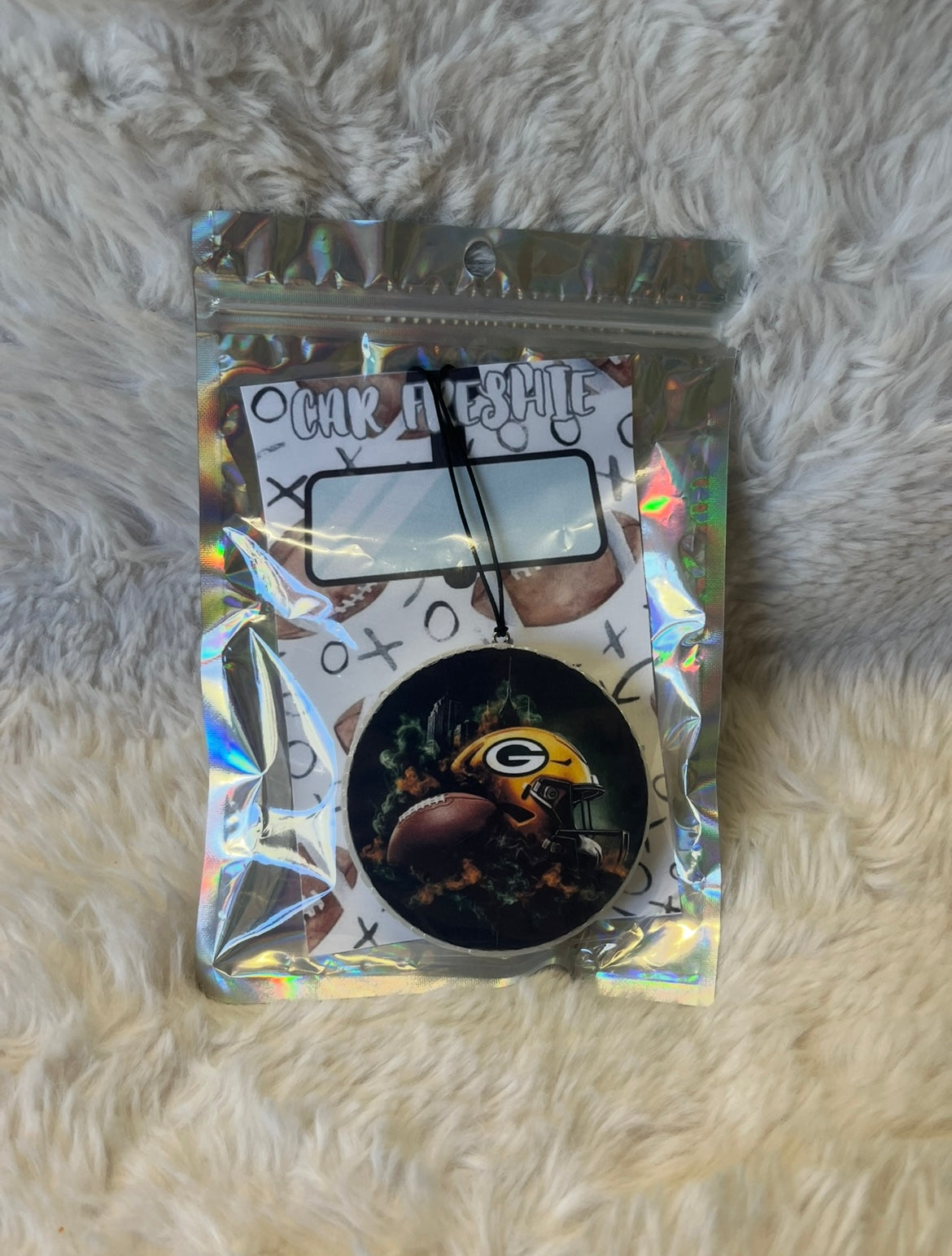 Have your car smelling real good with this football helmet and football car freshie hanging from your rearview mirror! Scented in Fierce: a blend of marine breeze, sandalwood, with musk wood notes to create a fresh and clean scent! May melt in extreme heat!