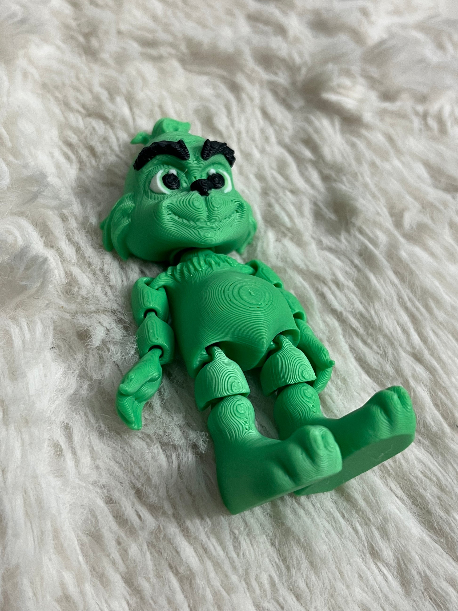- Santa Grinch – The same articulated Grinch dressed in a festive red-and-white Santa outfit with matching hat and boots.