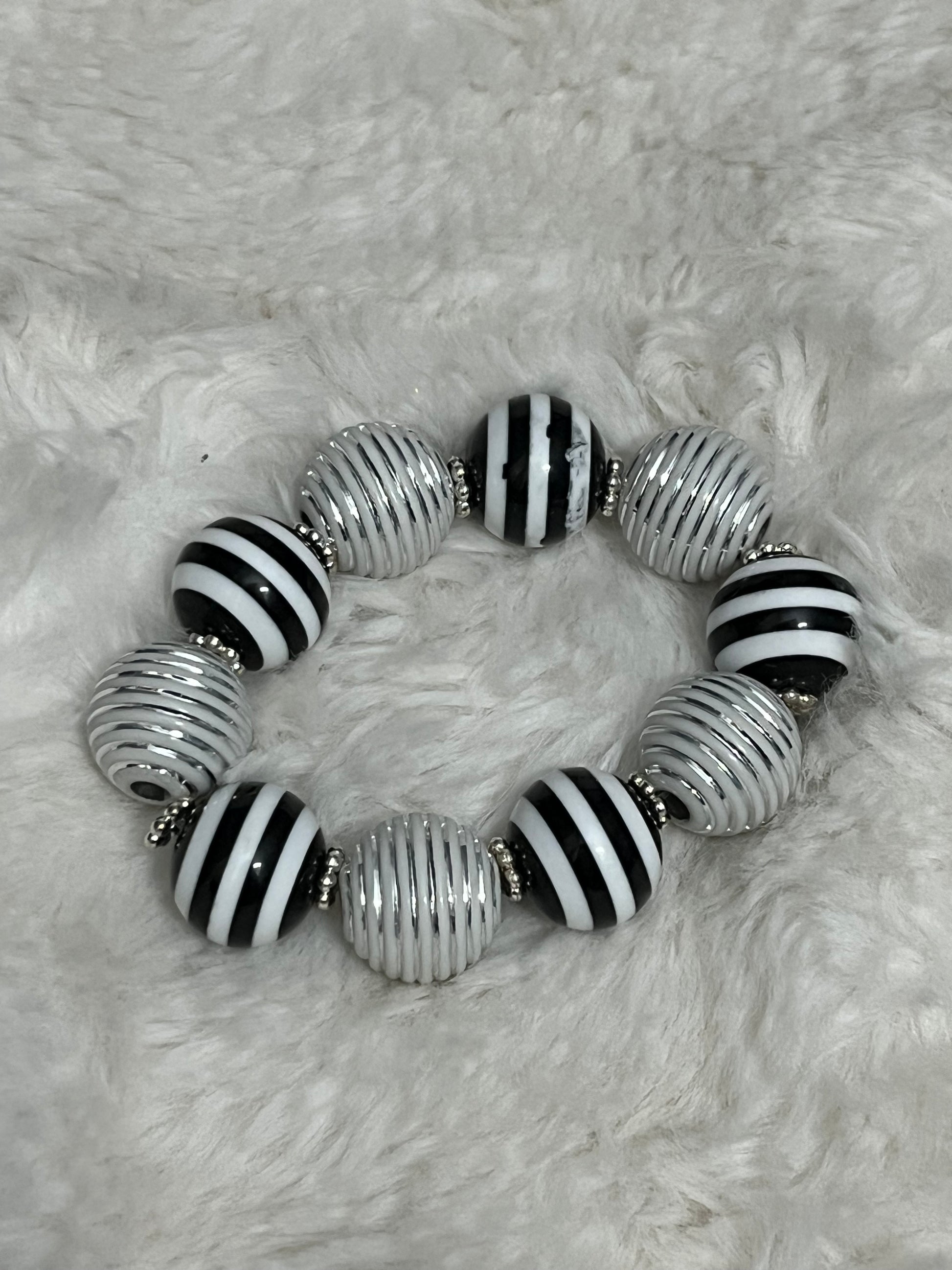 Make a subtle yet striking statement with the Shadow Stripes Bracelet. Designed with alternating black-and-white striped rounds and silver ribbed beads, this bracelet delivers bold contrast with a touch of shine. Its unique pattern adds instant edge while keeping things fun and versatile.