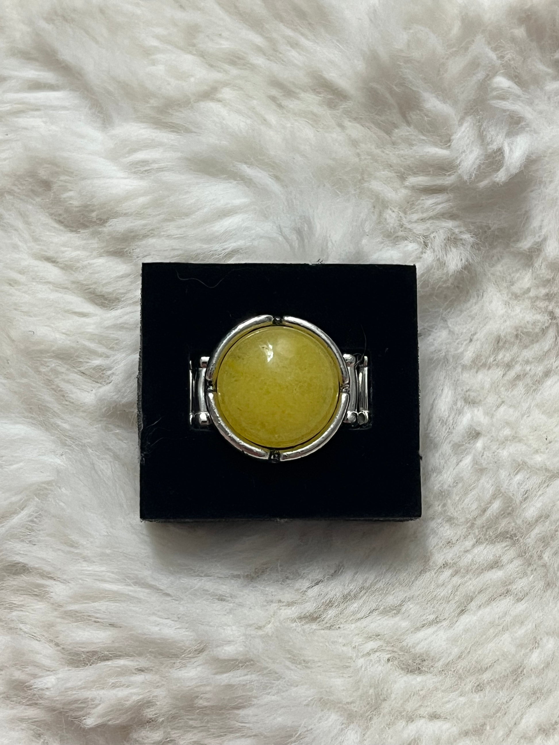 Make a subtle yet striking statement with the Sunny Glow Ring. Designed with a bold round yellow stone set in polished silver, this ring delivers timeless style with a radiant pop of cheerful color.