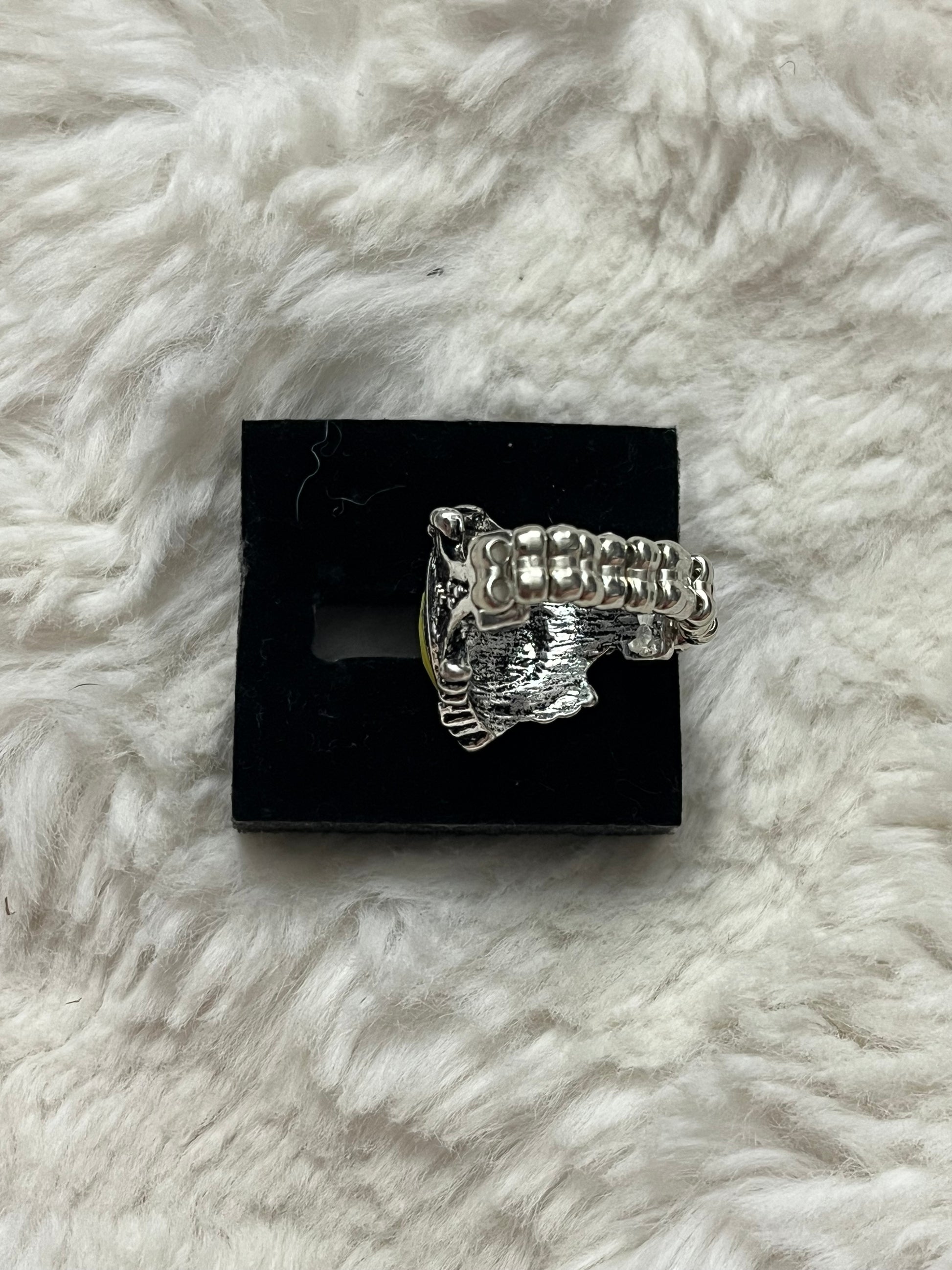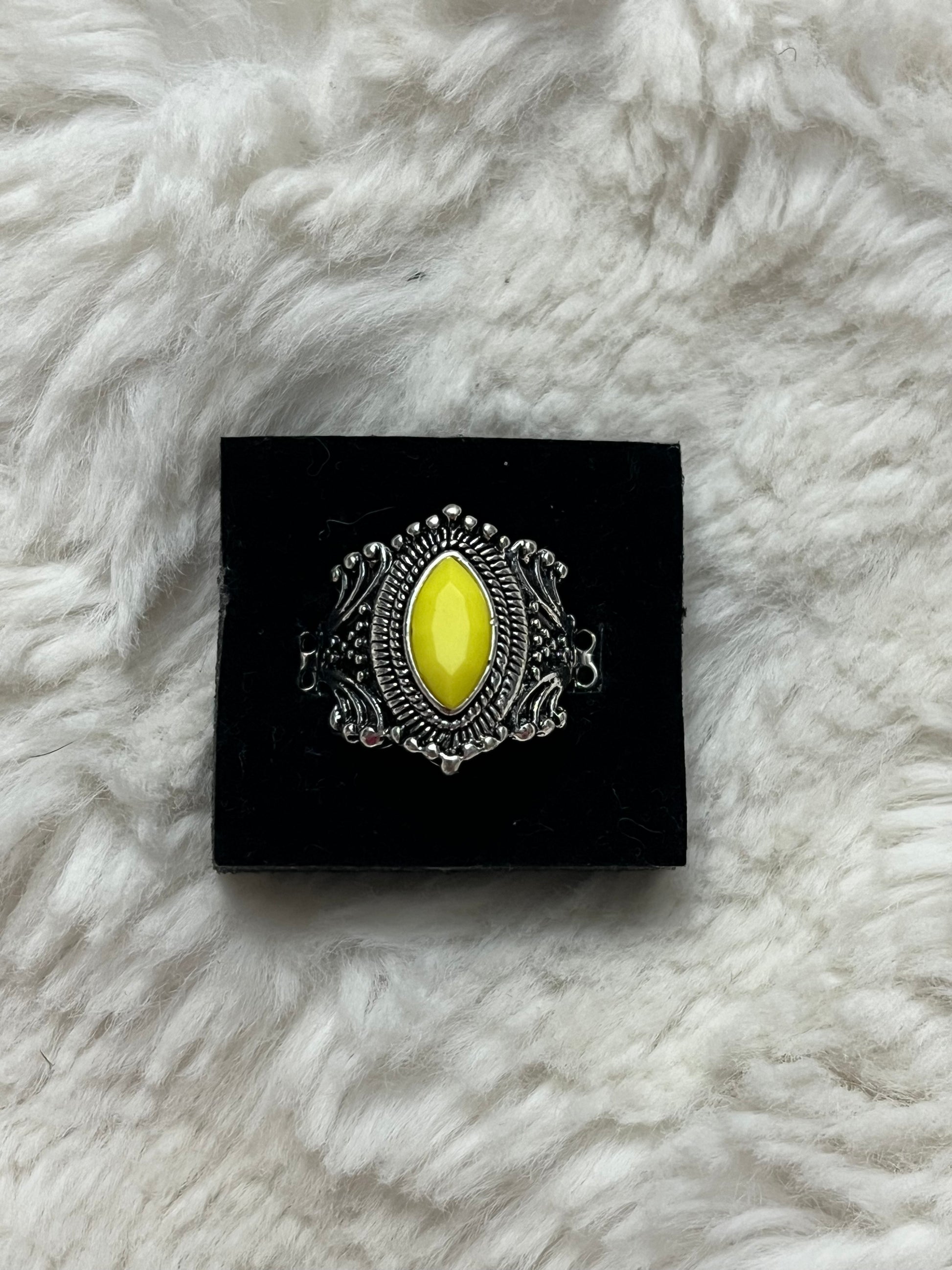 Make a subtle yet striking statement with this Radiant Relic Ring. Designed with an antique-inspired silver setting that frames a bold marquise-shaped yellow stone, this ring delivers timeless style with a modern edge.