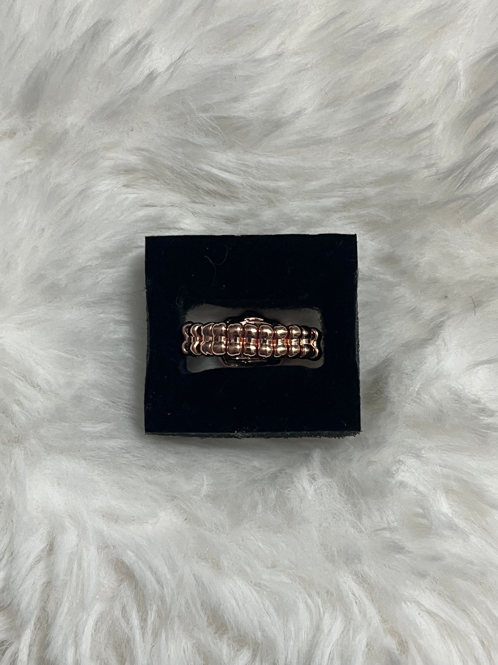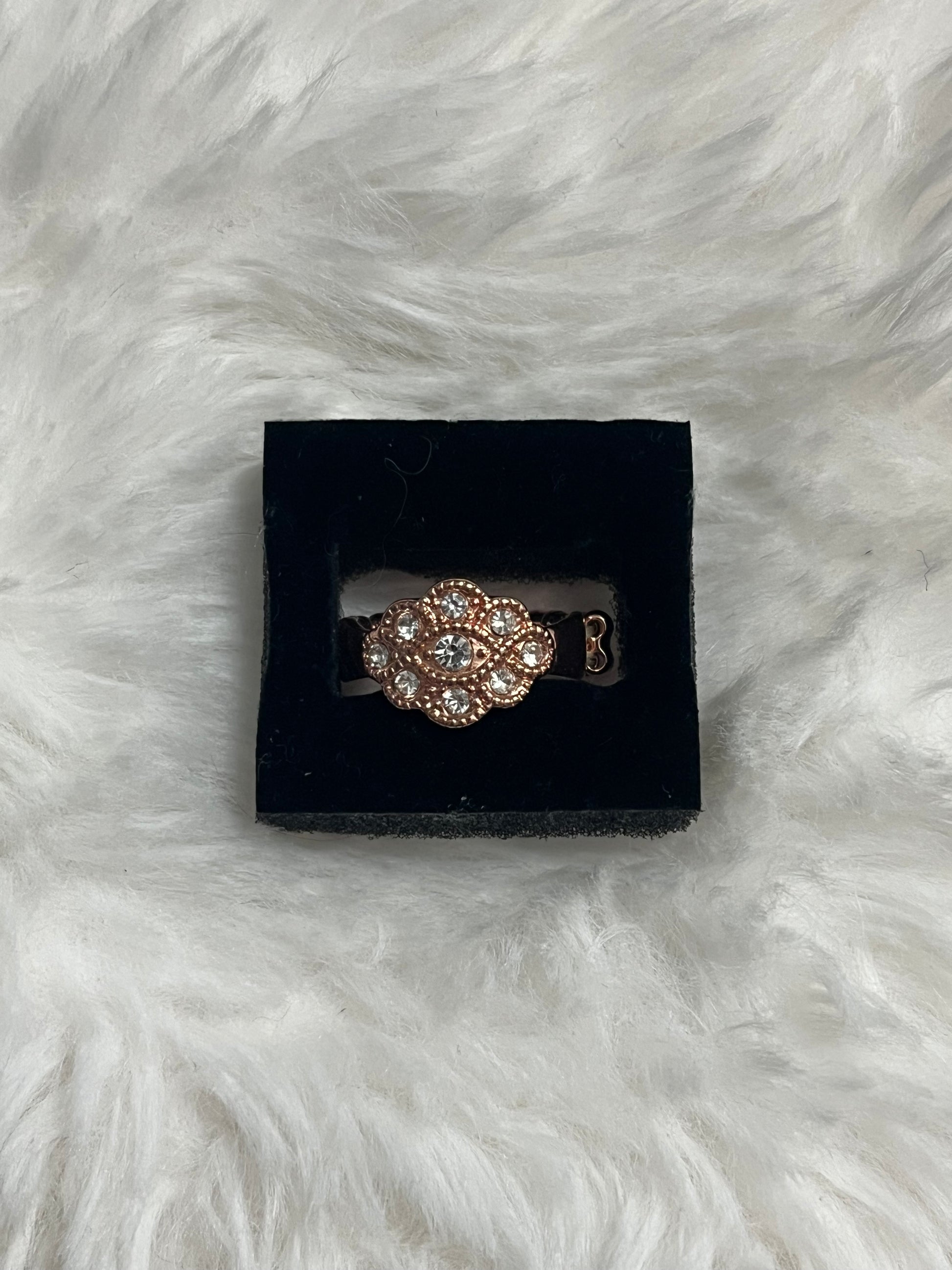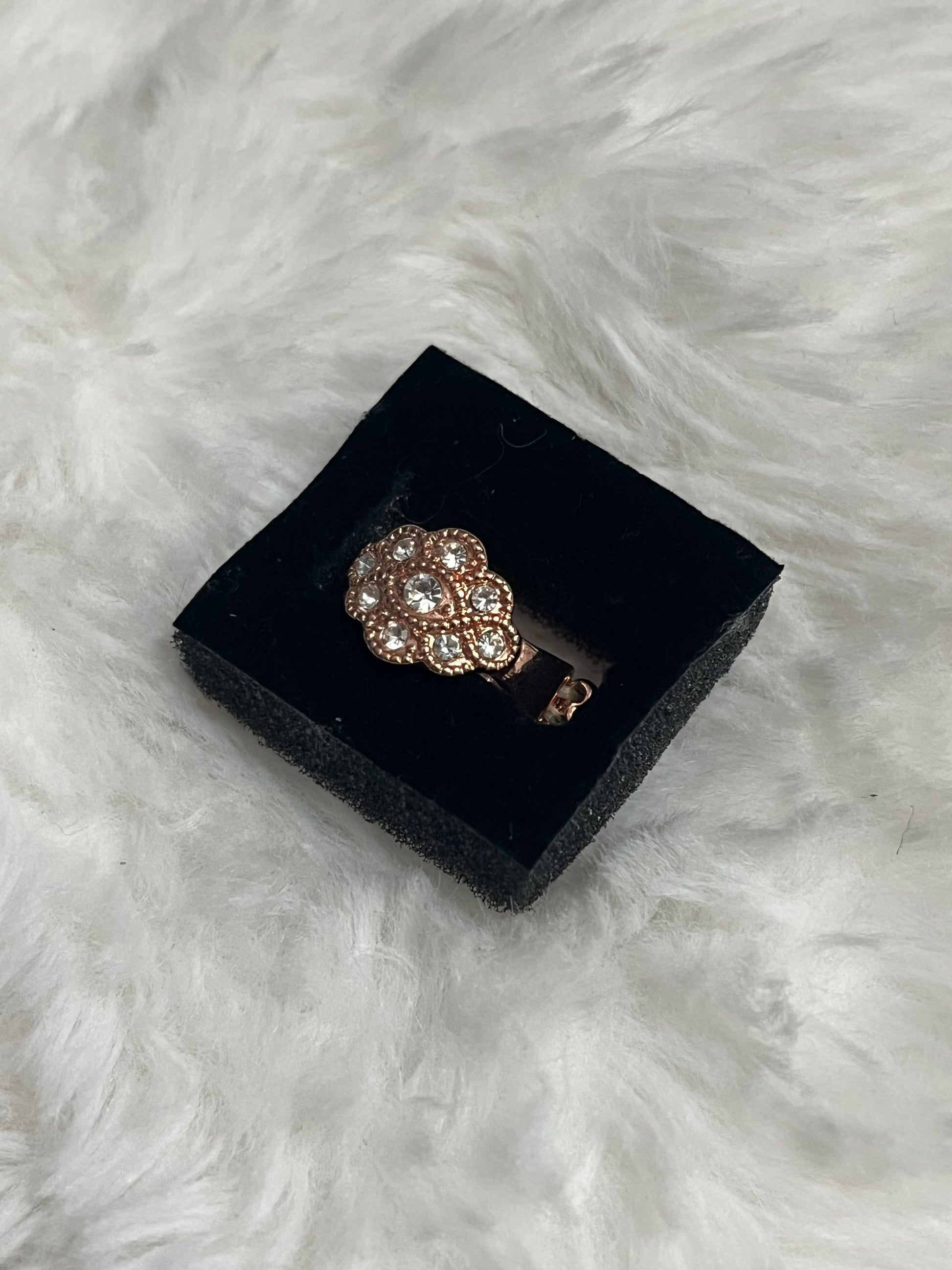 Delicate, radiant, and effortlessly romantic—this rose gold-tone floral ring is the ultimate statement of vintage-inspired grace. Featuring a dazzling arrangement of crystal rhinestones in a soft, blooming silhouette, this piece sparkles with just the right amount of glamour and charm.