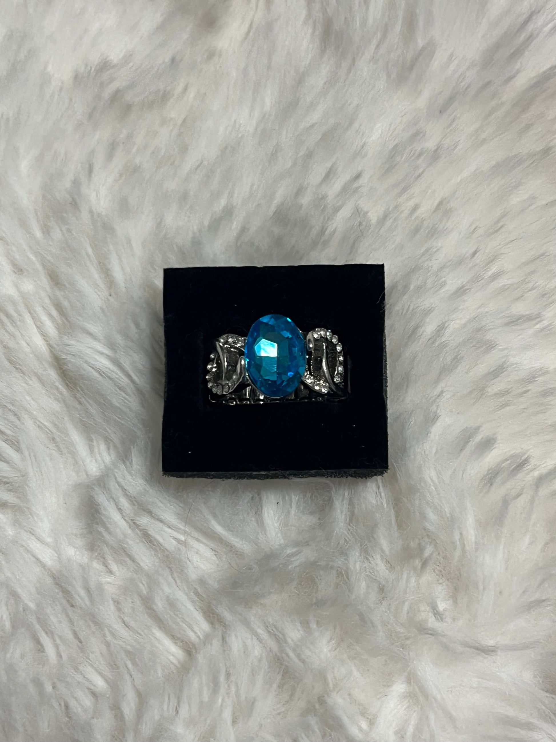 Make a bold, ocean-inspired statement with this radiant blue gemstone ring. Designed with a high-shine silver-tone finish and an intricate swirling band, this ring delivers timeless style with a splash of undersea glamour. The large faceted aqua-blue stone catches the light beautifully, while the wave-like accents add a graceful, sculptural touch.