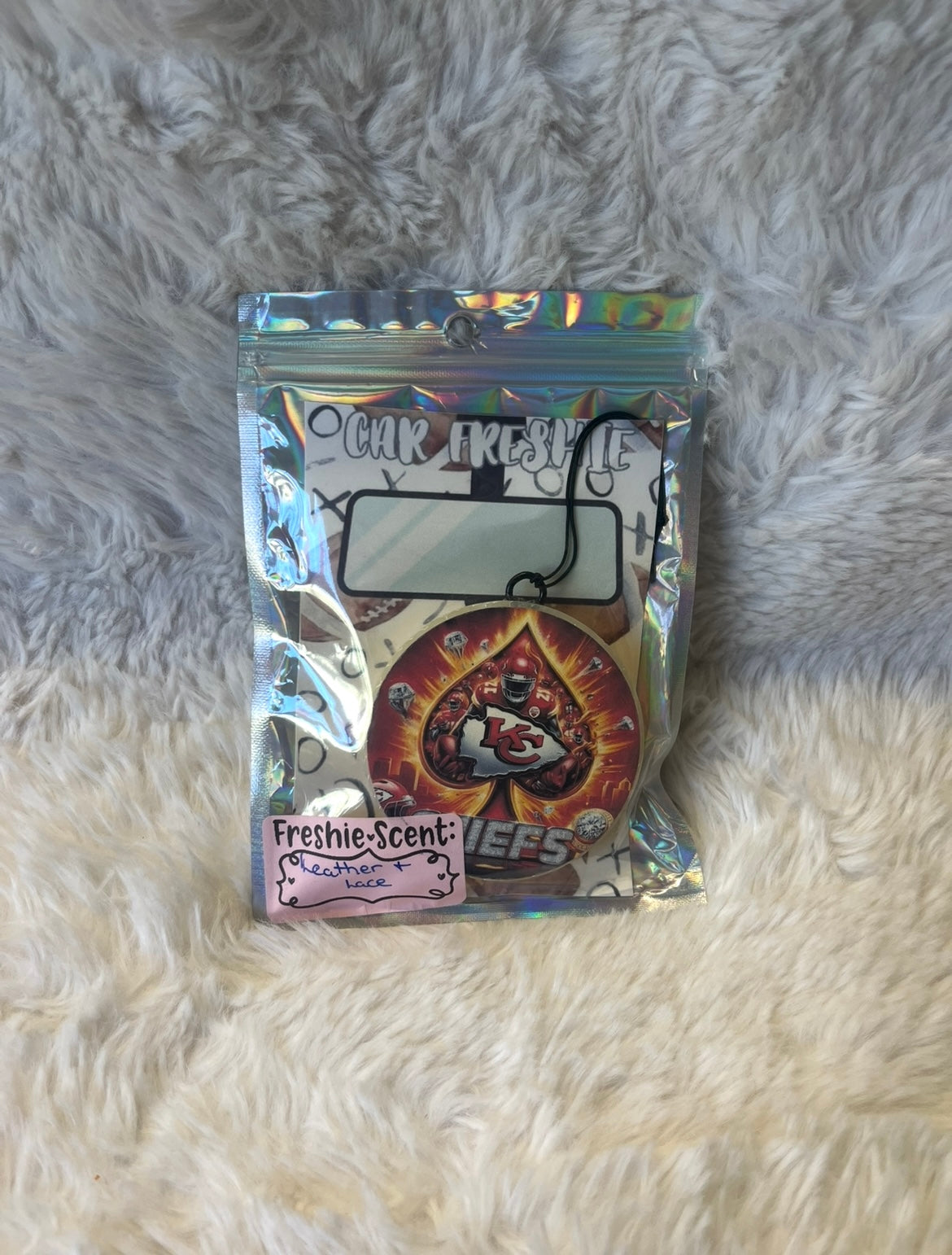 Rep your team pride everywhere you go with these bold Kansas City Chiefs freshies! Designed in two unique styles, each one captures the fiery energy of game day and keeps your space smelling amazing. Hang it in your car, locker, or any small space for the perfect blend of team spirit and fresh fragrance.
