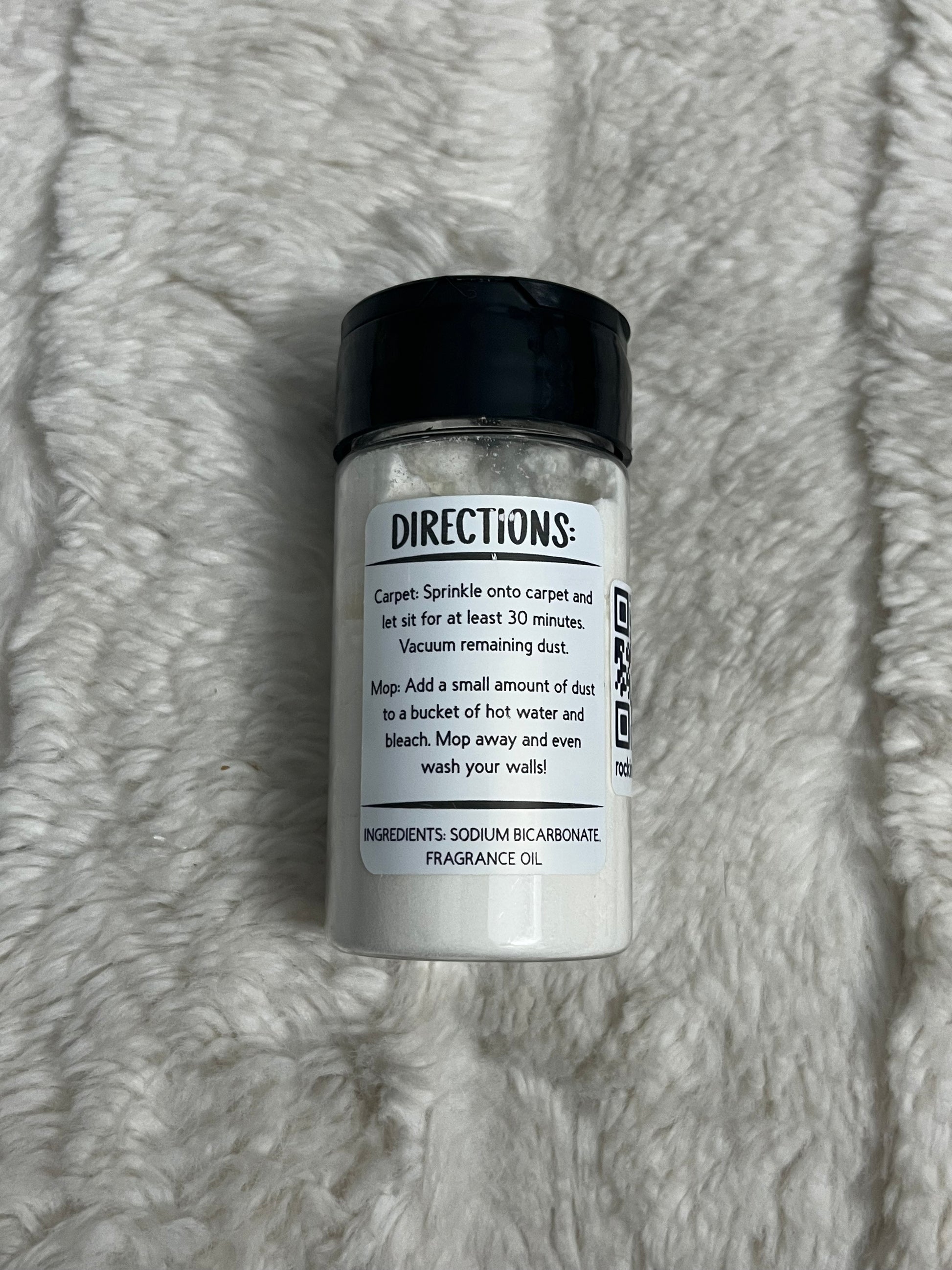 - Carpet: Sprinkle onto carpet and let sit for at least 30 minutes. Vacuum remaining dust.