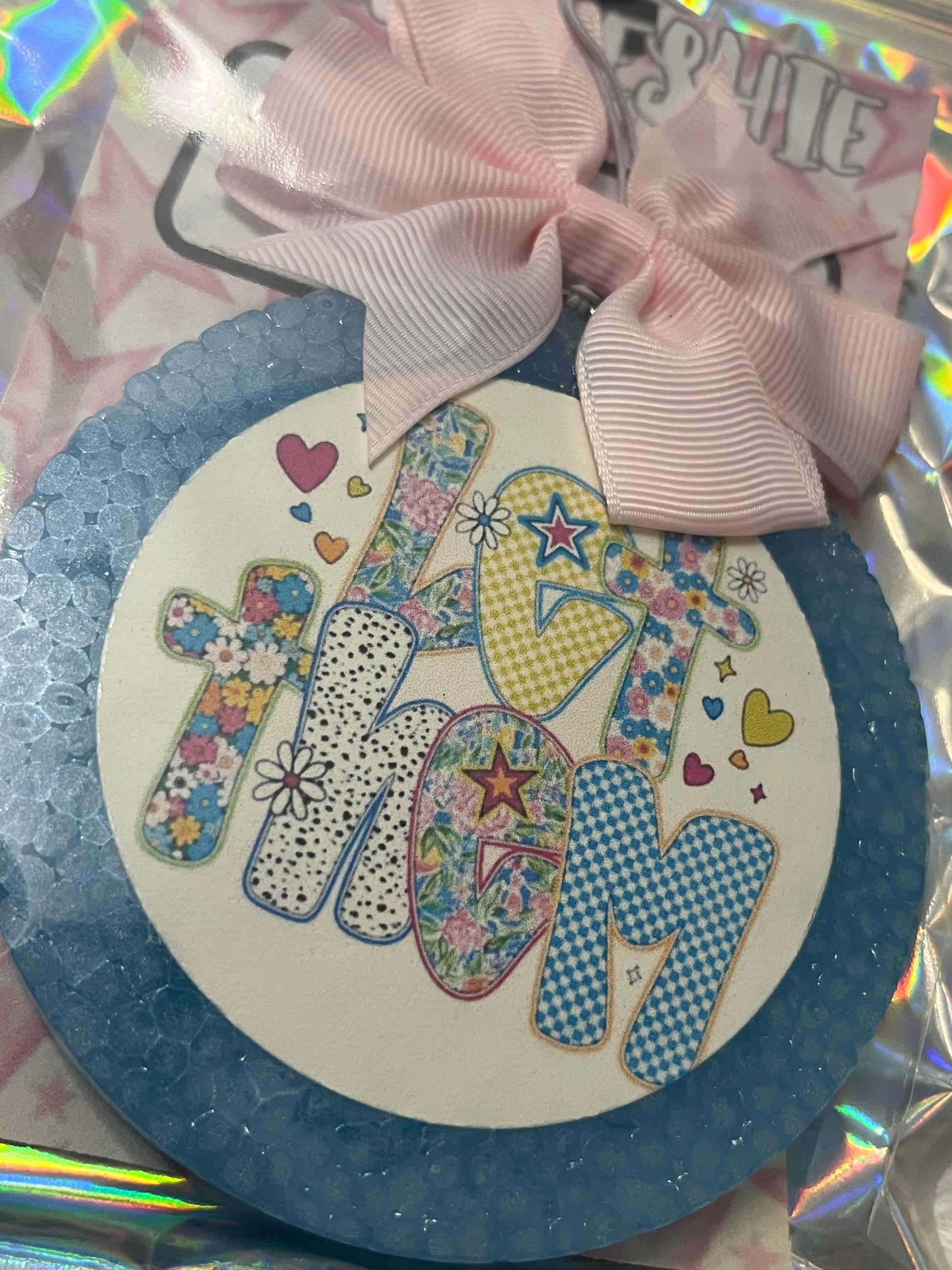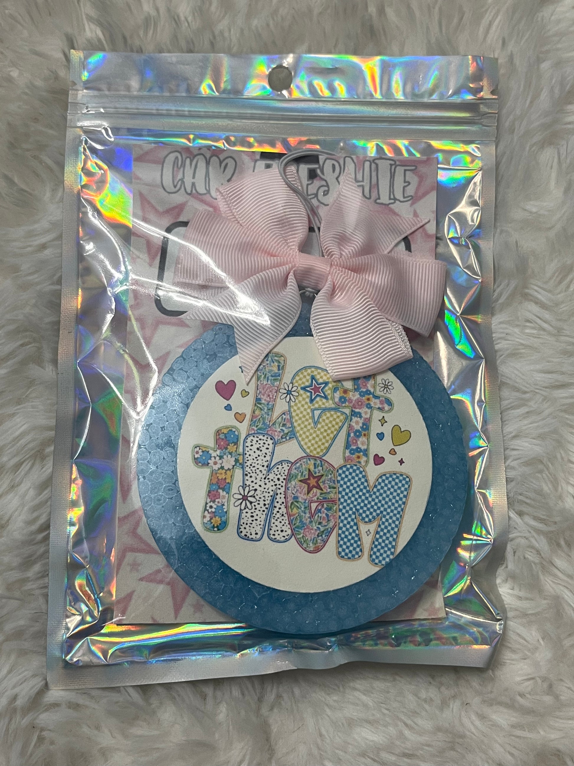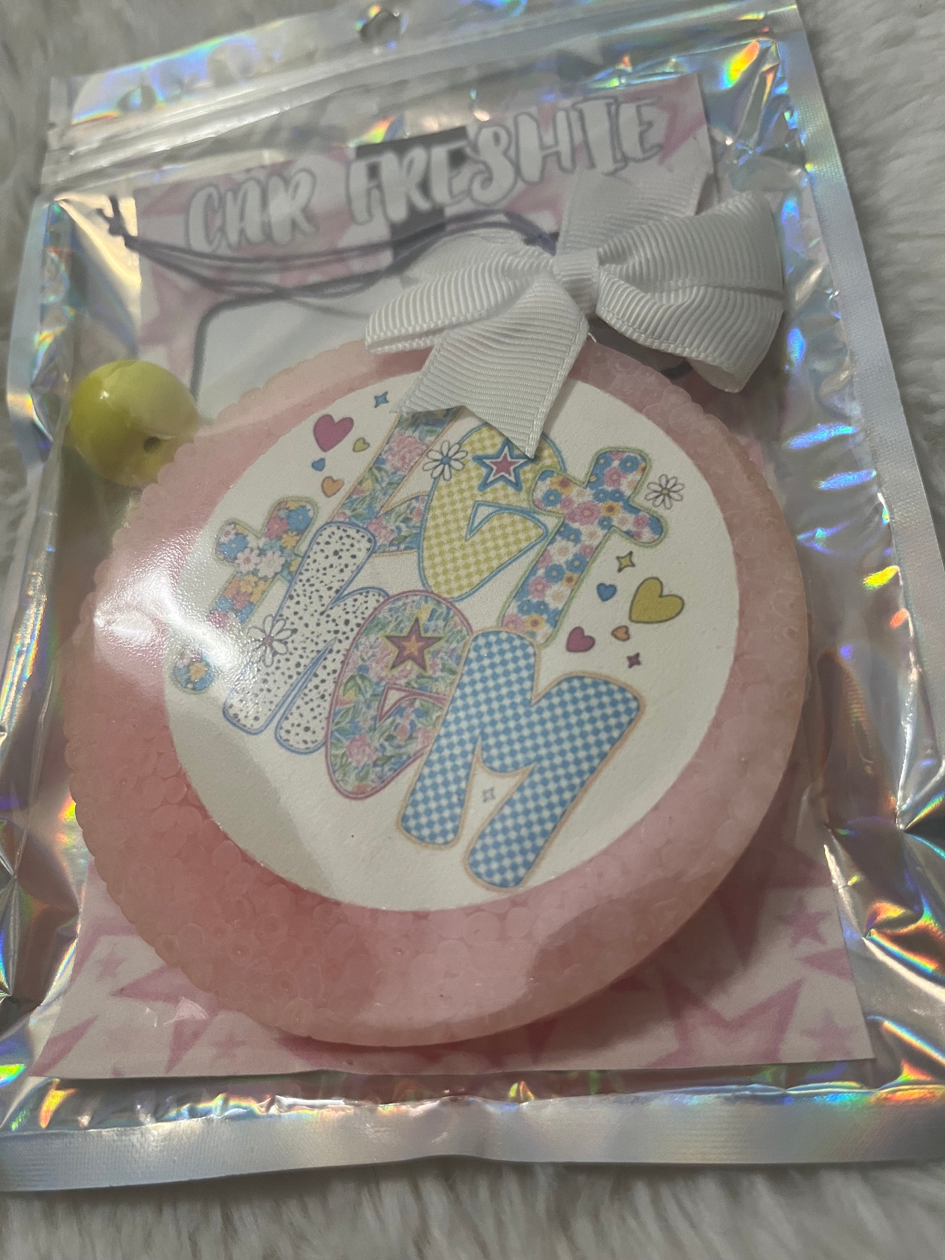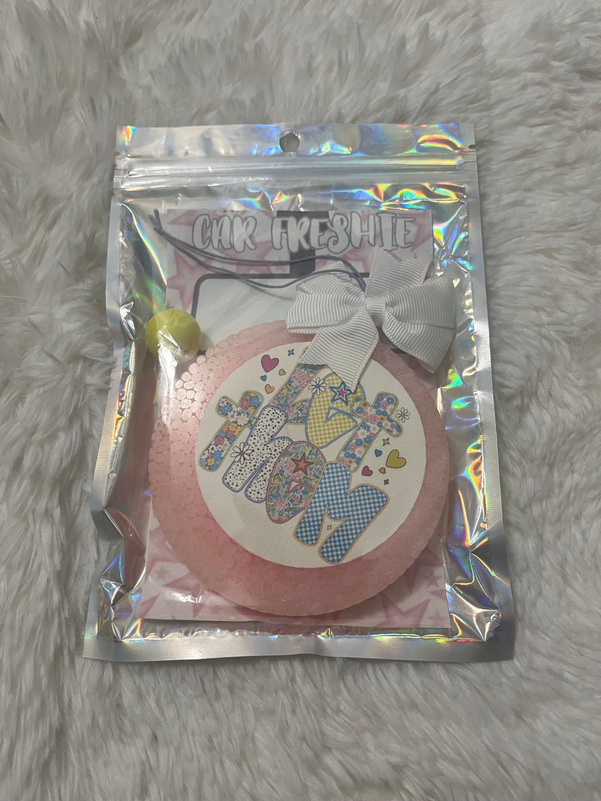 Make a playful statement with the Let Them Freshie, complete with a soft bow and bold design that brings a little personality to any ride or room.
