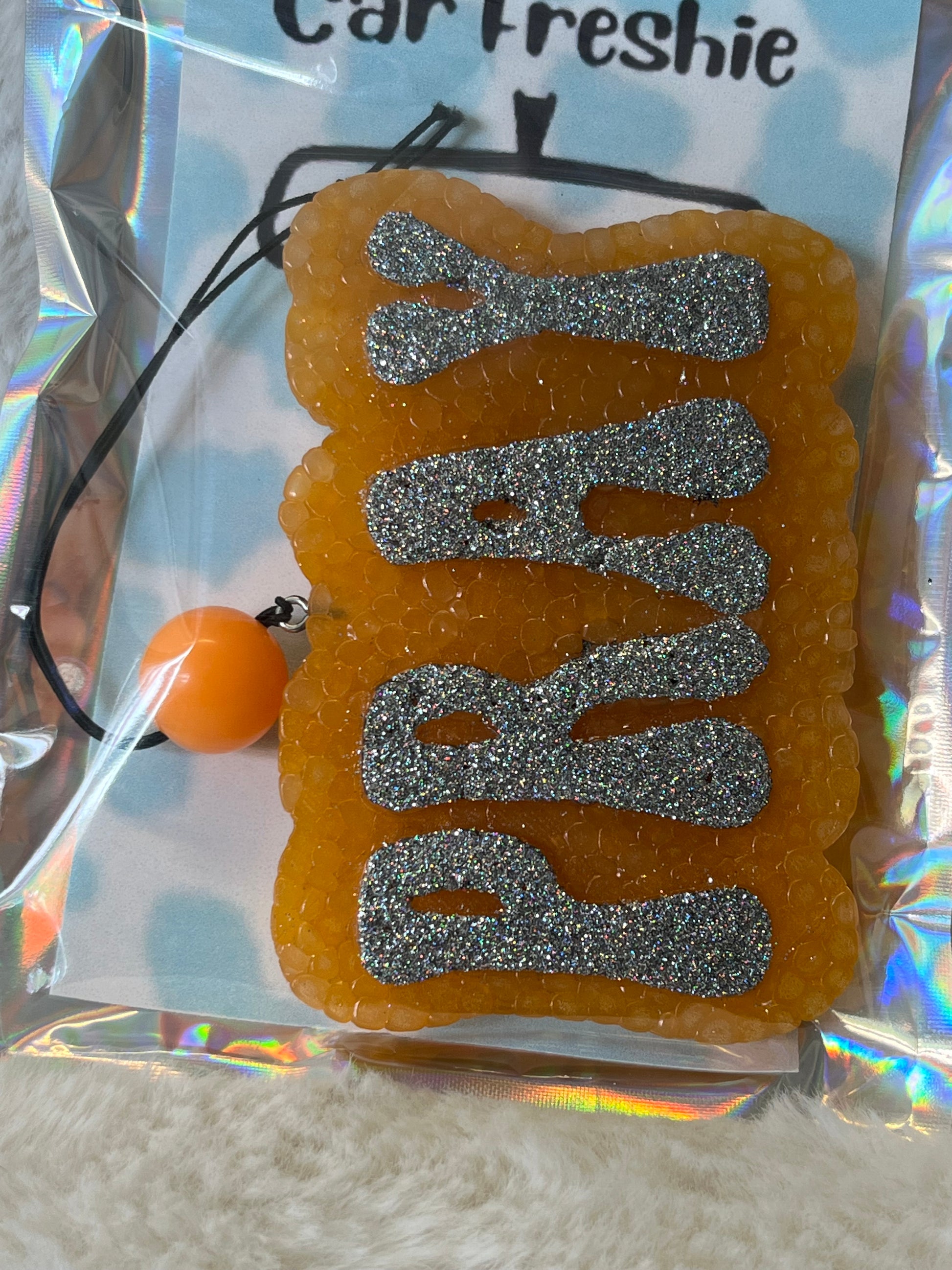 Orange - Scented in Bump & Grind: a blend of citrus, lime, and orange blossoms to create a fruity and fresh fragrance! This freshie has a bead to top it!
