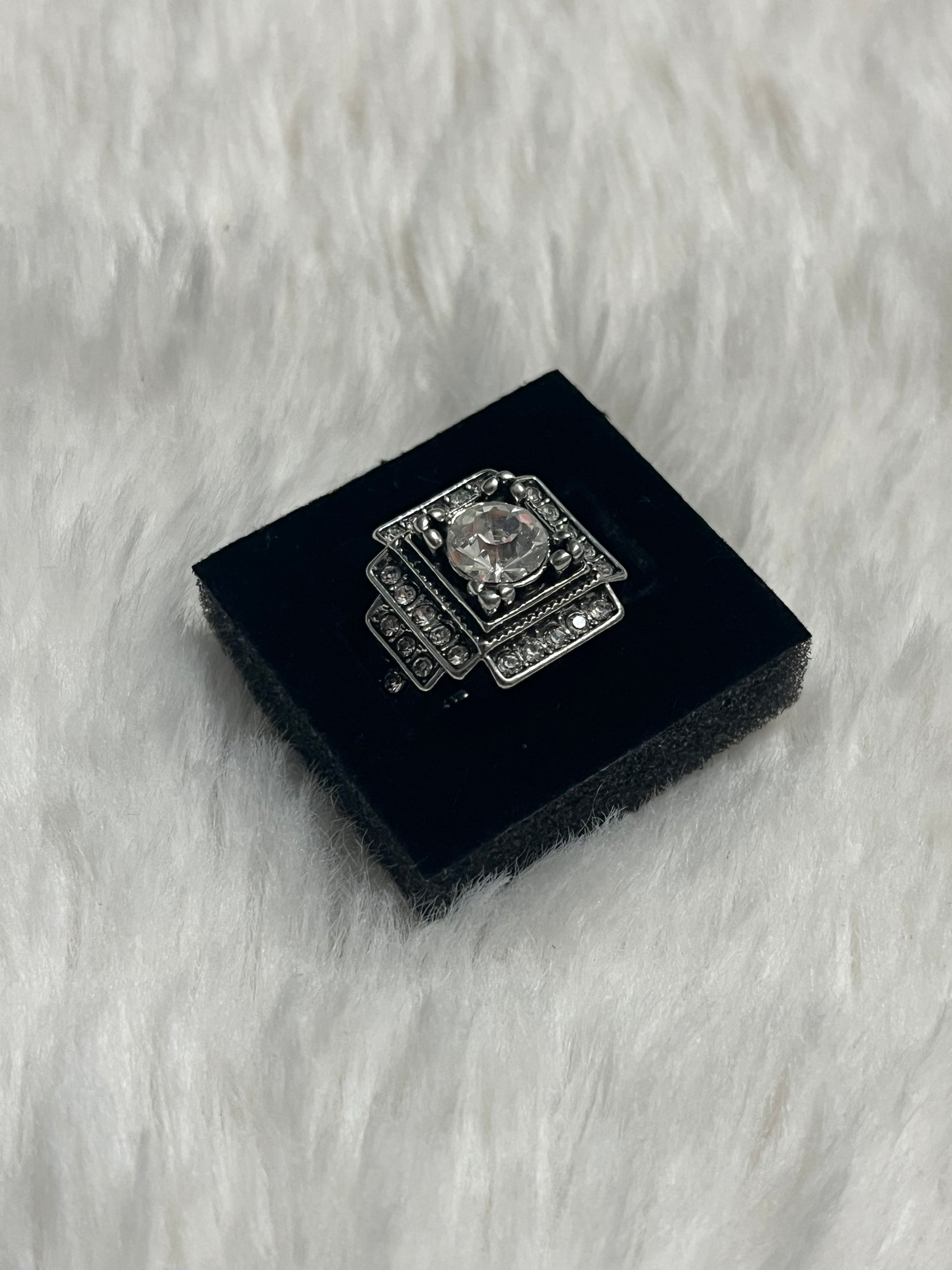Bring timeless shine to your jewelry collection with this dazzling art deco inspired ring. Designed with a bold square silhouette, a brilliant-cut center stone, and layered rows of rhinestones, this piece delivers vintage elegance with modern sparkle.