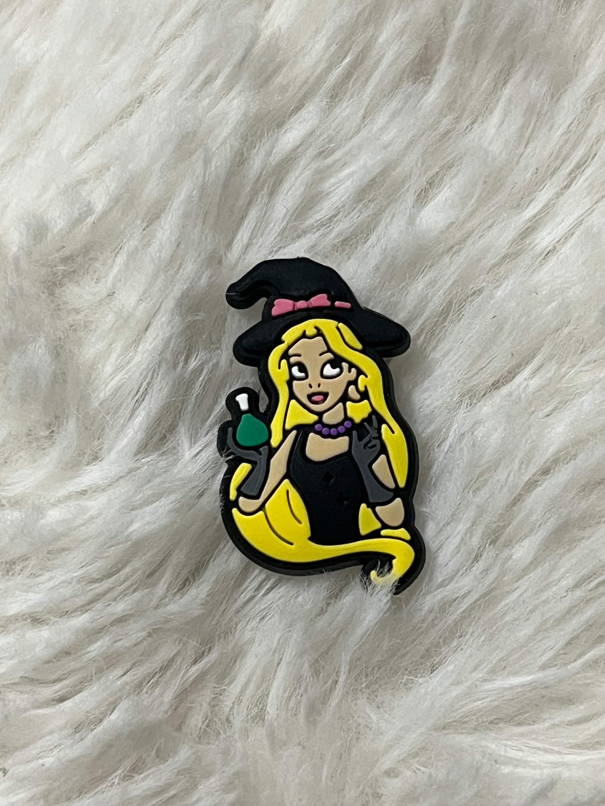 Four charms inspired by one iconic tower-locked girl and the story surrounding her—magic, mischief, innocence, and darkness all in one set. Vibrant blonde hair, flowing dresses, potion bottles, and one very serious villain expression bring this collection to life in a bold fairytale finish.
