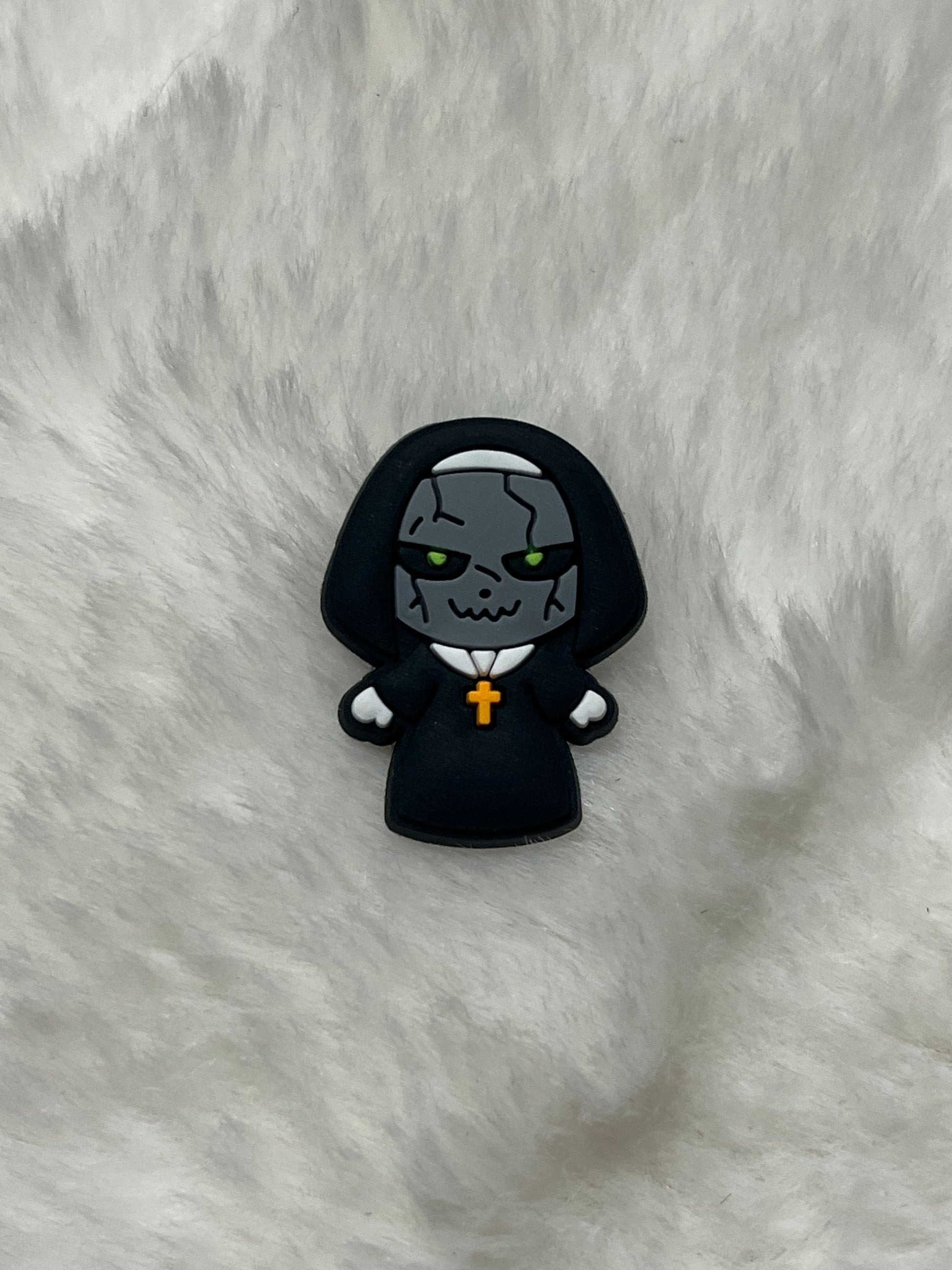 Bring some spine-chilling style to your Crocs with these terrifyingly fun Valak shoe charms — the demon nun herself in multiple creepy designs to haunt your every step.