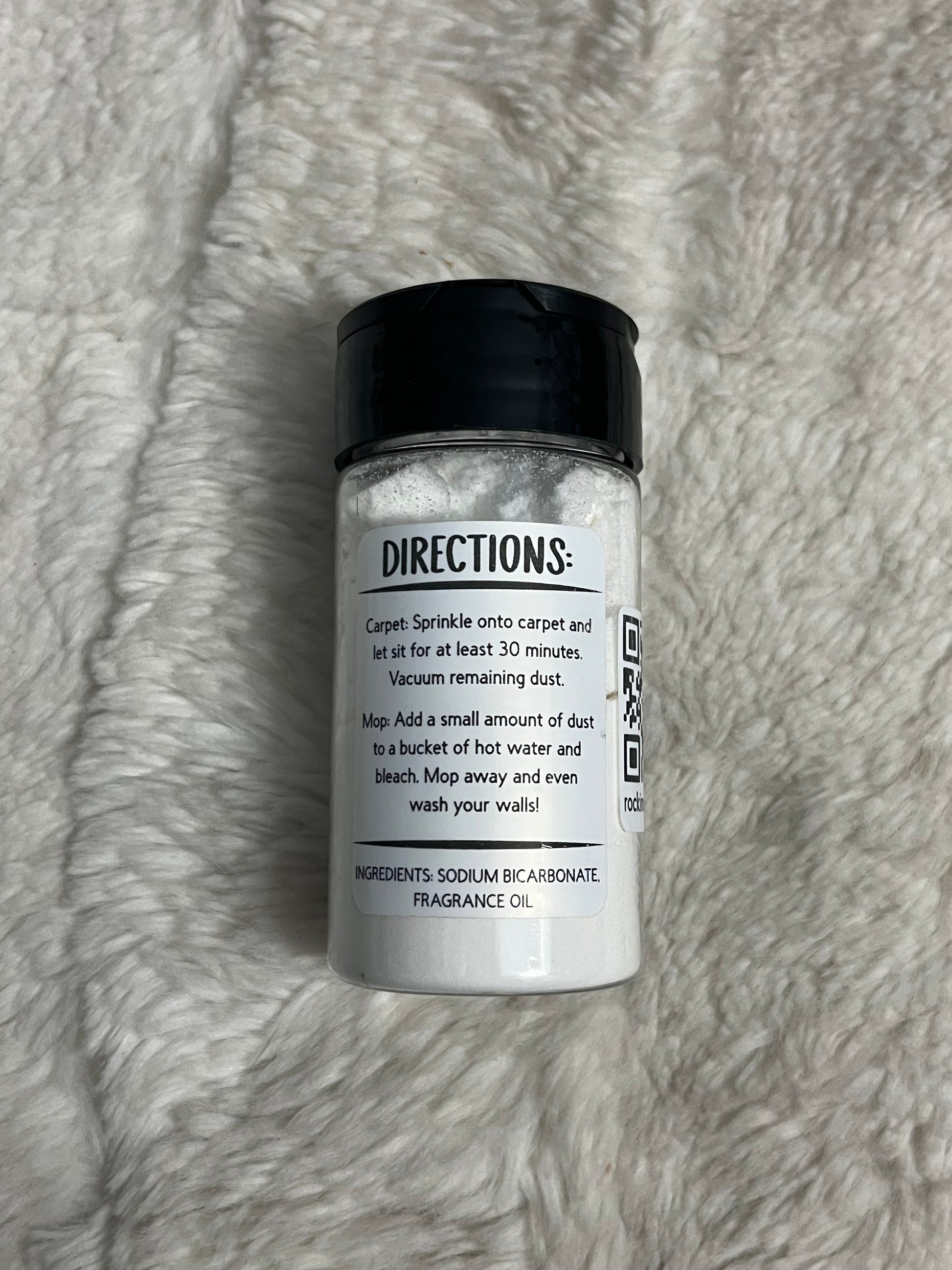 - Carpet: Sprinkle onto carpet and let sit for at least 30 minutes. Vacuum remaining dust.
