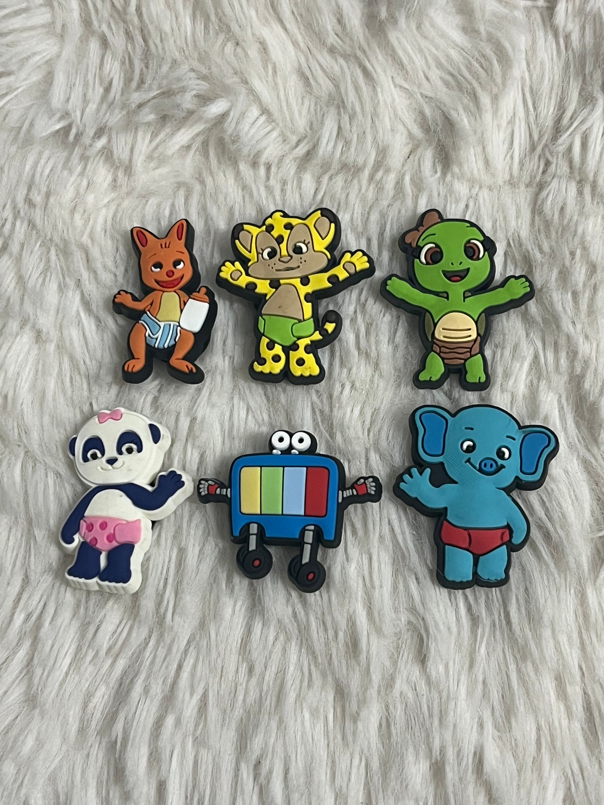 Turn everyday Crocs and accessories into a learning-time celebration with these adorable Word Party shoe charms. Featuring the beloved baby animals and their helpful robot friend, this set is full of bright colors, happy expressions, and instant recognition for little fans.