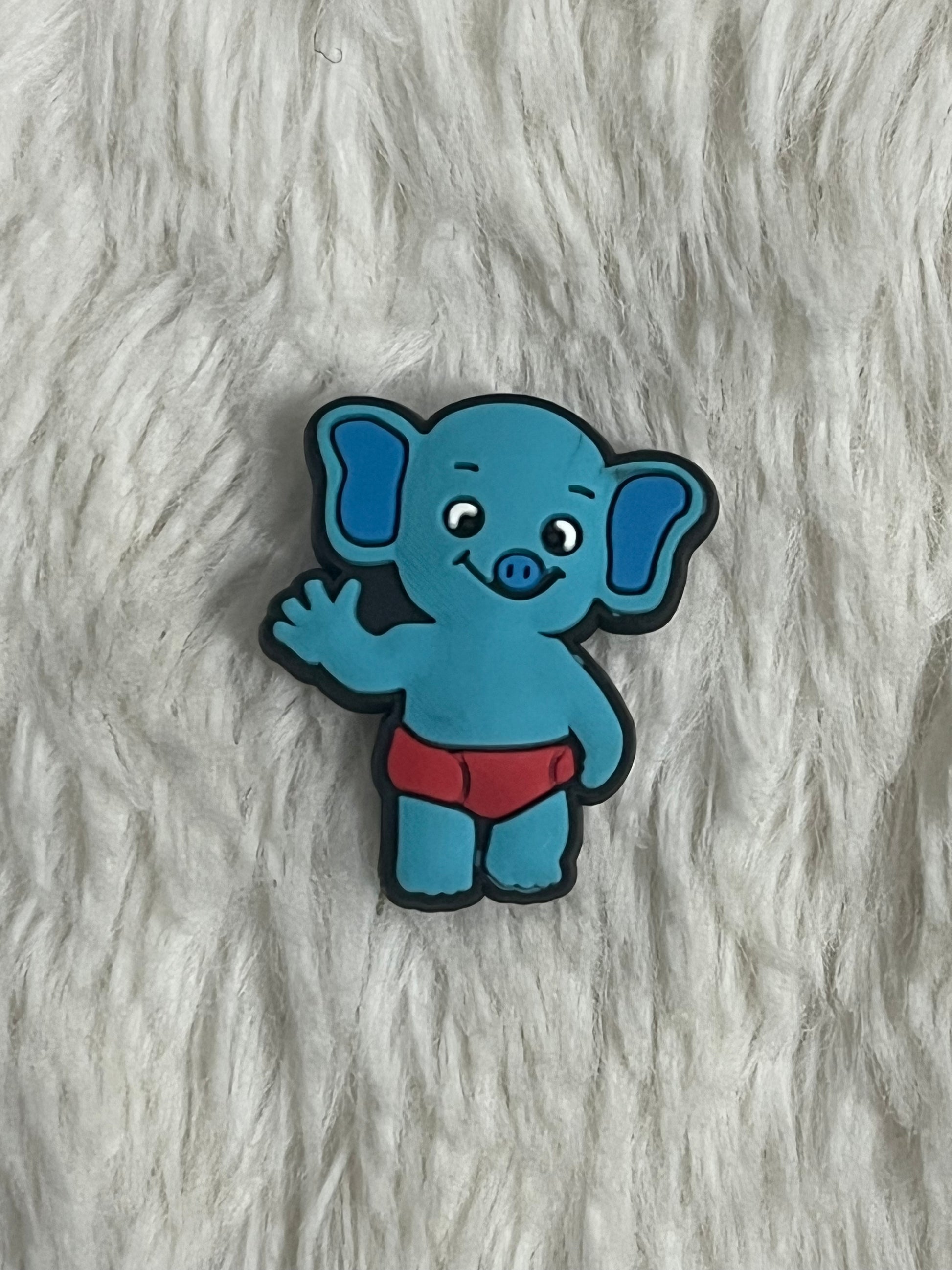 - Bailey – The friendly blue baby elephant in red shorts, waving hello.